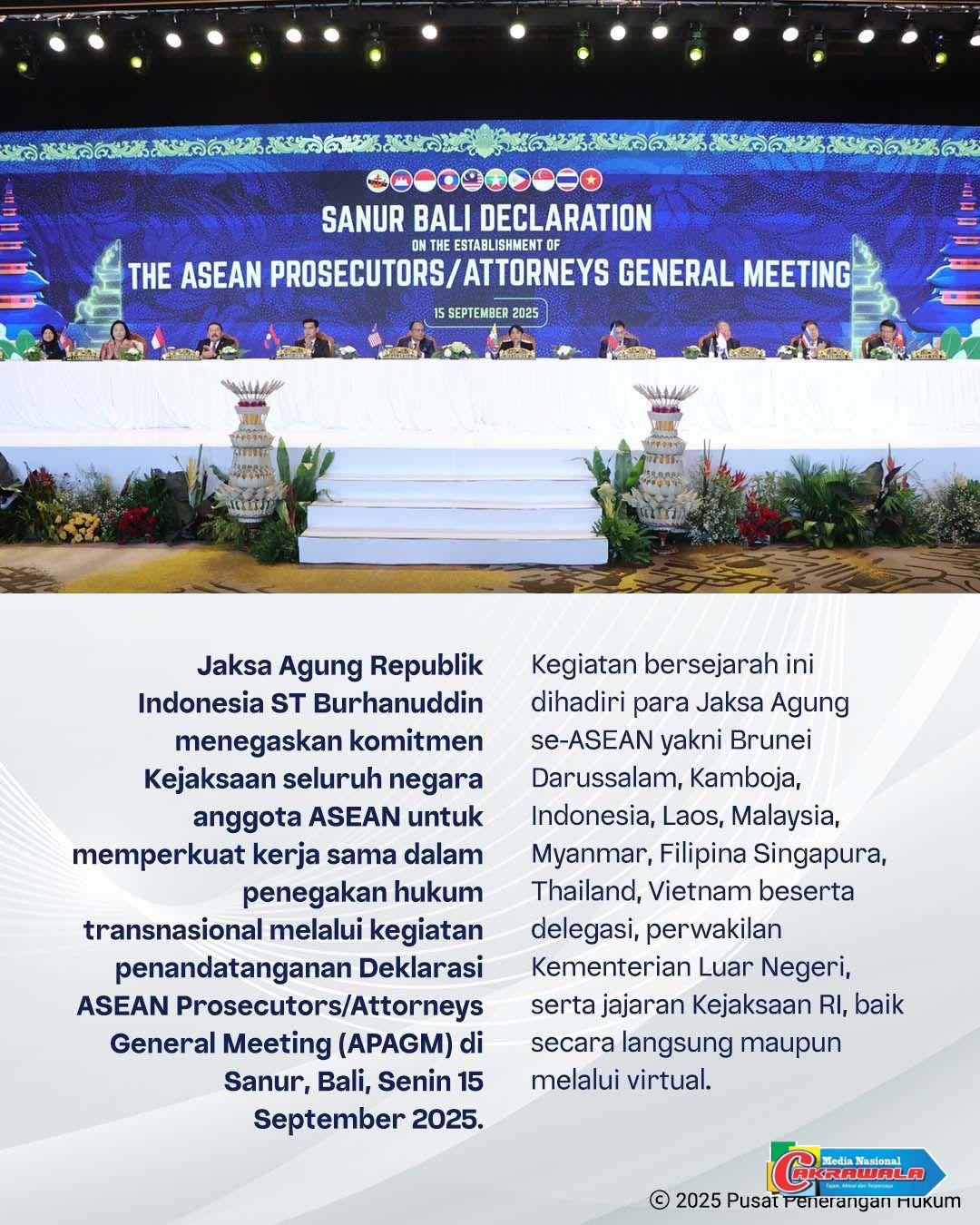 Jaksa Agung menyatakan bahwa keberadaan APAGM akan menjadi fondasi penting bagi integrasi hukum ASEAN dalam mewujudkan komunitas yang aman, adil, dan sejahtera, sejalan dengan Visi Komunitas ASEAN 2045.