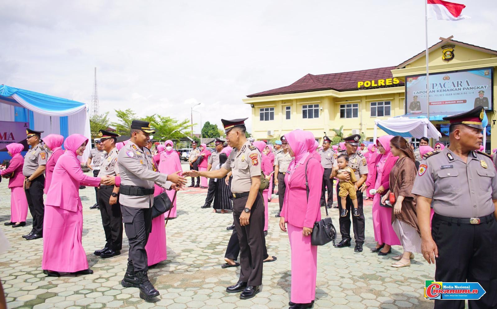 Medianasionalcakrawala.com, Kayuagung – Upacara kenaikan pangkat personel Polres Ogan Komering Ilir (OKI) digelar di halaman Polres OKI HADIR, Rabu (31/12/2025).