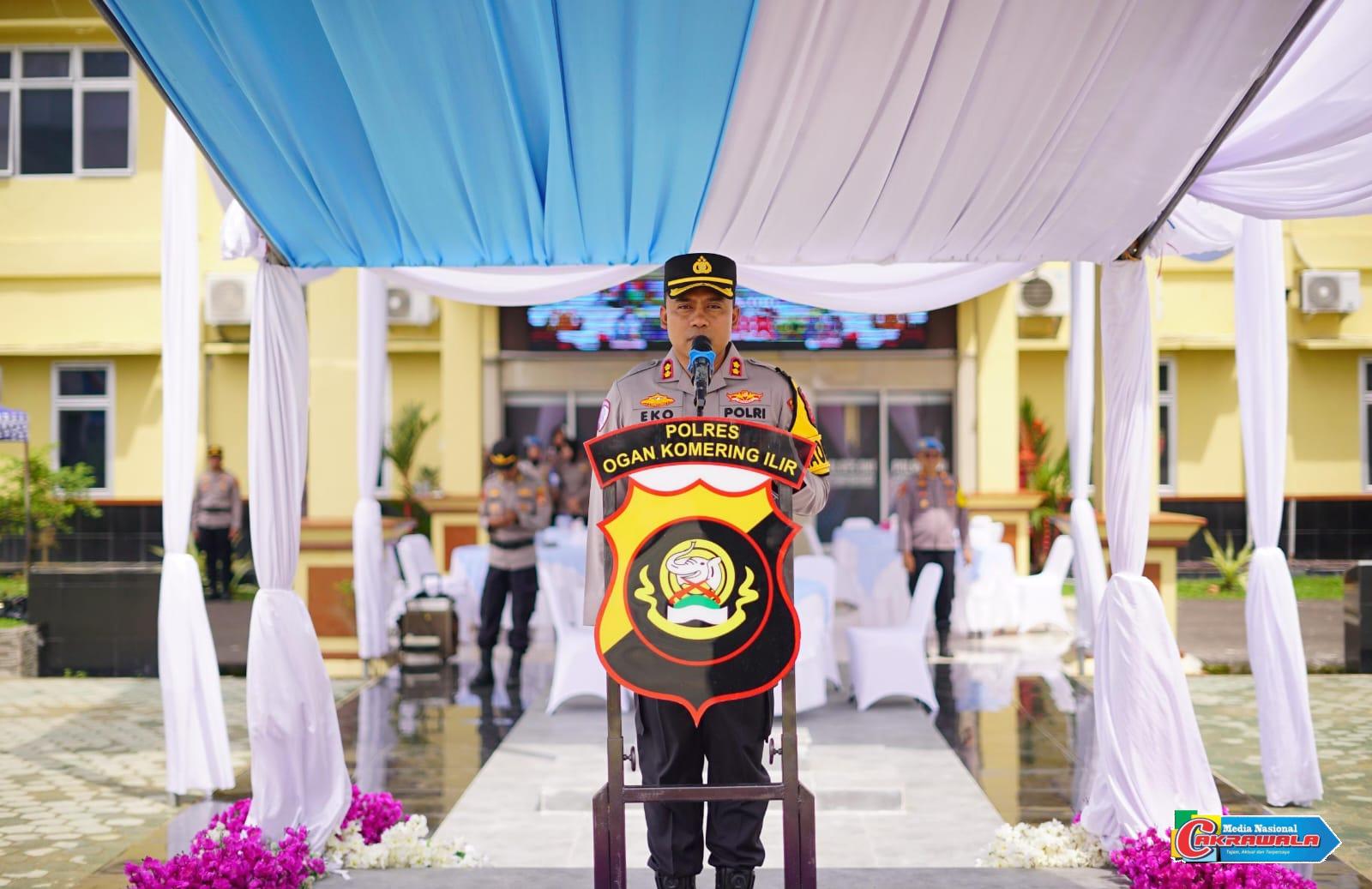 Upacara tersebut dipimpin langsung oleh Kapolres OKI AKBP Eko Rubiyanto, SH, SIK, MH, dan diikuti oleh para pejabat utama, perwira, serta seluruh personel Polres OKI.