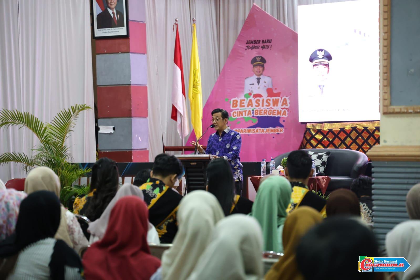 Jember –MN Cakrawala– Pemerintah Kabupaten Jember terus memperkuat sinergi dengan para mahasiswa penerima Beasiswa Cinta Bergema. Dalam agenda sosialisasi yang digelar di Universitas PGRI Argopuro pada Rabu (28/1/2026), pemerintah mengajak ratusan mahasiswa untuk aktif mempromosikan potensi lokal melalui media sosial.