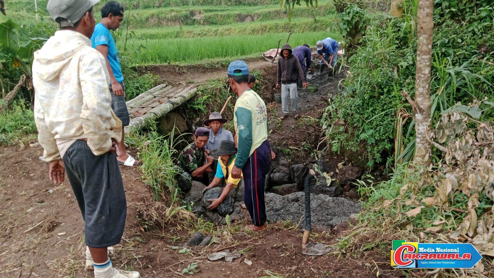 Akses Persawahan Lebih Mudah, Babinsa dan Warga Trotosari Bangun Jembatan Irigasi