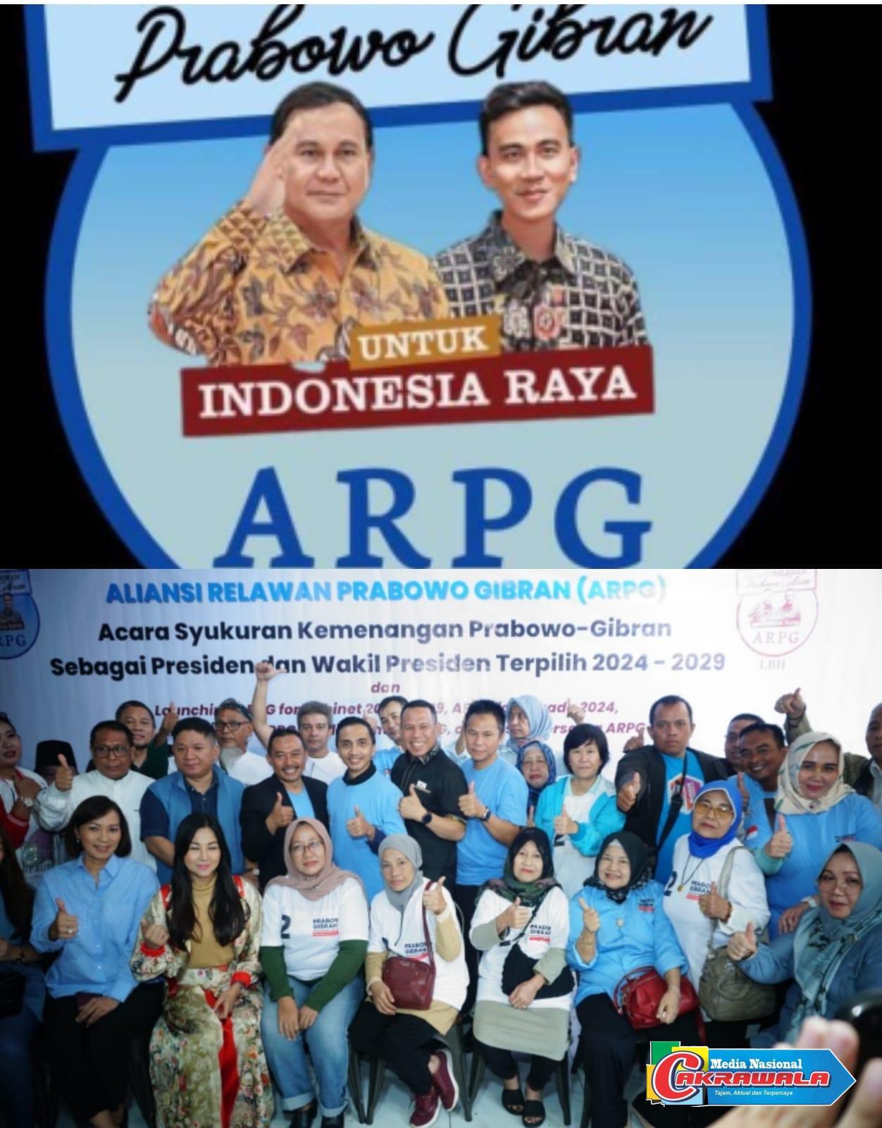 “Kami ARPG yang tergabung dari puluhan organisasi relawan Prabowo-Gibran pada Pilpres 2024 lalu, akan hadir meramaikan Deklarasi Akbar GSN. Kami juga mendukung Pak Rosan Roeslani yang didaulat menjadi Ketum GSN, sebagai wadah perjuangan pendukung Prabowo-Gibran,” kata Syafrudin Budiman SIP Kornas ARPG kepada media, Kamis (31/11/2024) di Jakarta.