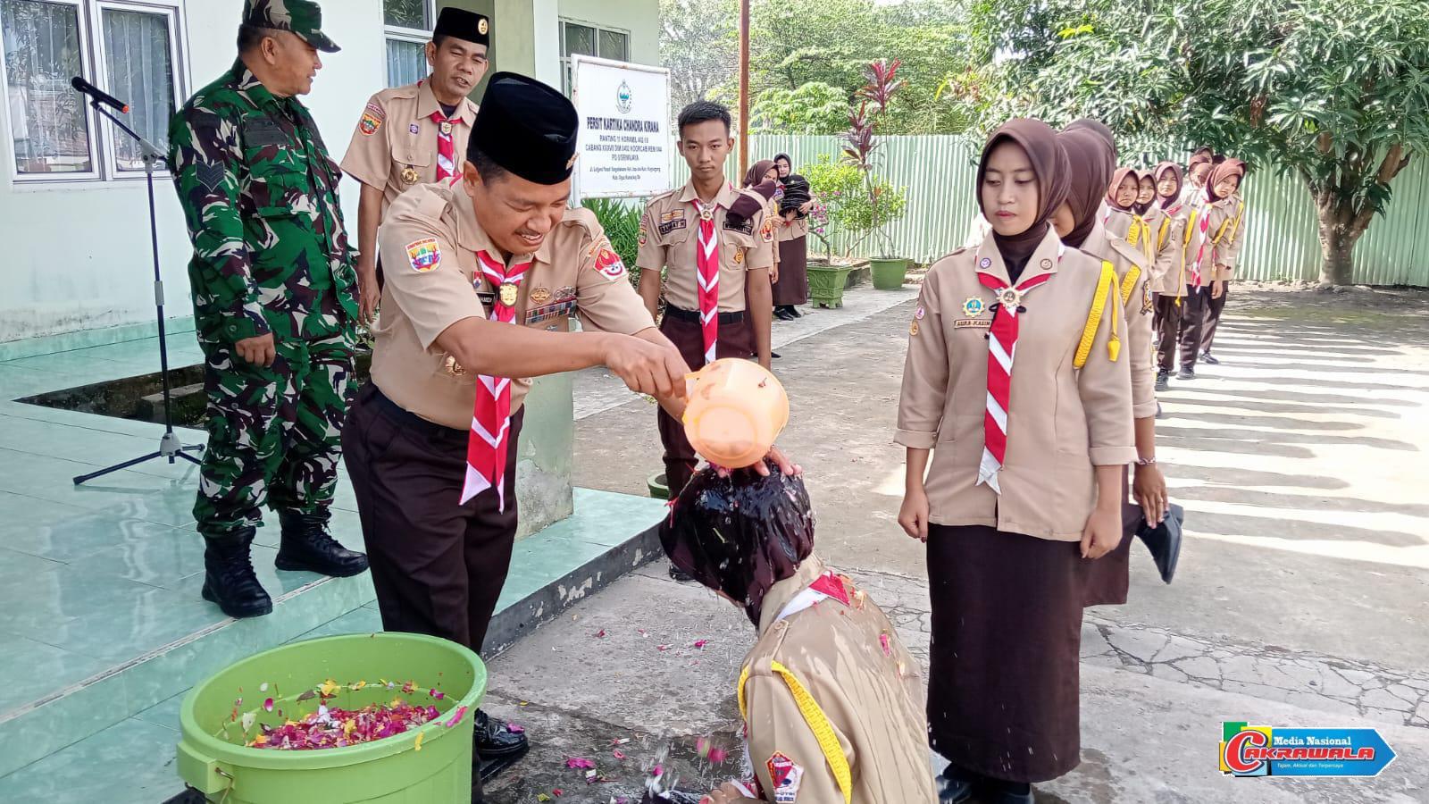 Upacara pelantikan berlangsung dengan khidmat, diawali dengan laporan kegiatan, penyematan tanda anggota, pembacaan ikrar, dan diakhiri dengan foto bersama antara para anggota baru dengan jajaran Koramil serta pembina pramuka.