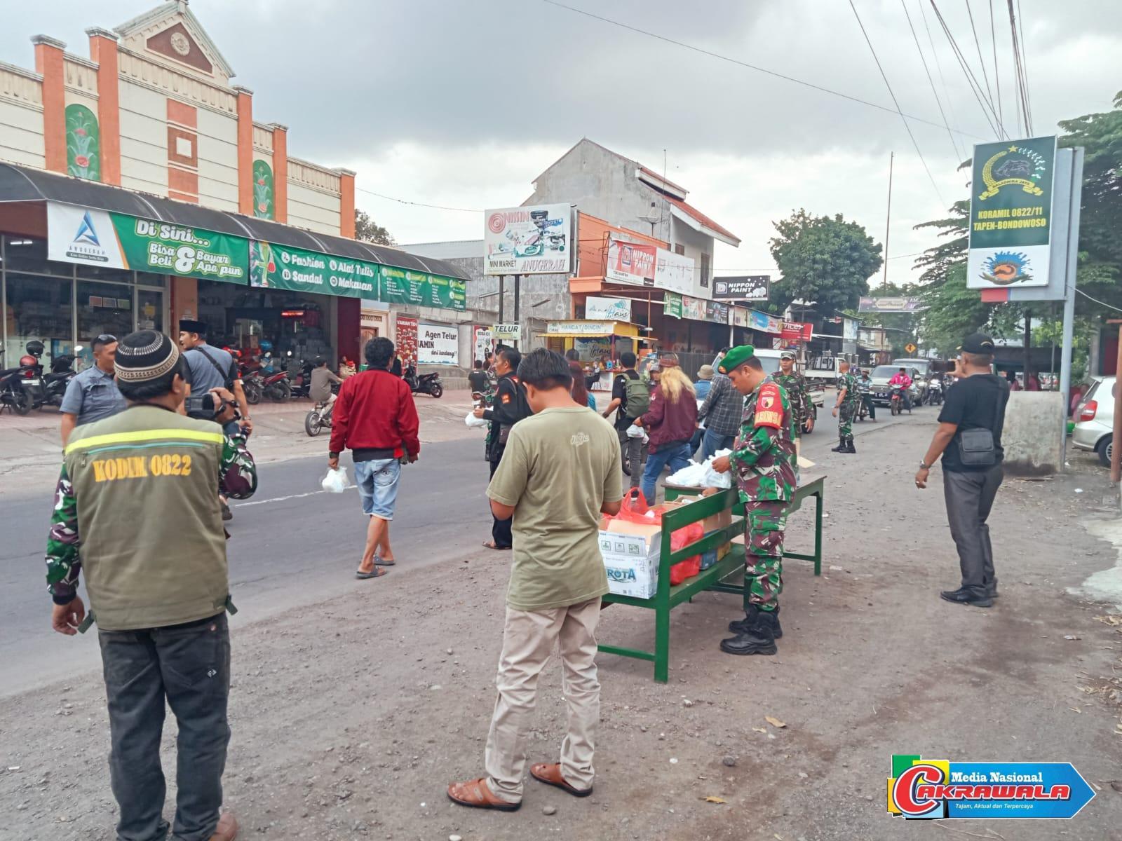 Bondowoso,MNCakrawala-Personel Koramil 0822/11 Tapen dan Segenap jajaran pengurus tim cakrawala membagikan ratusan takjil gratis kepada pengguna jalan untuk berbuka puasa.