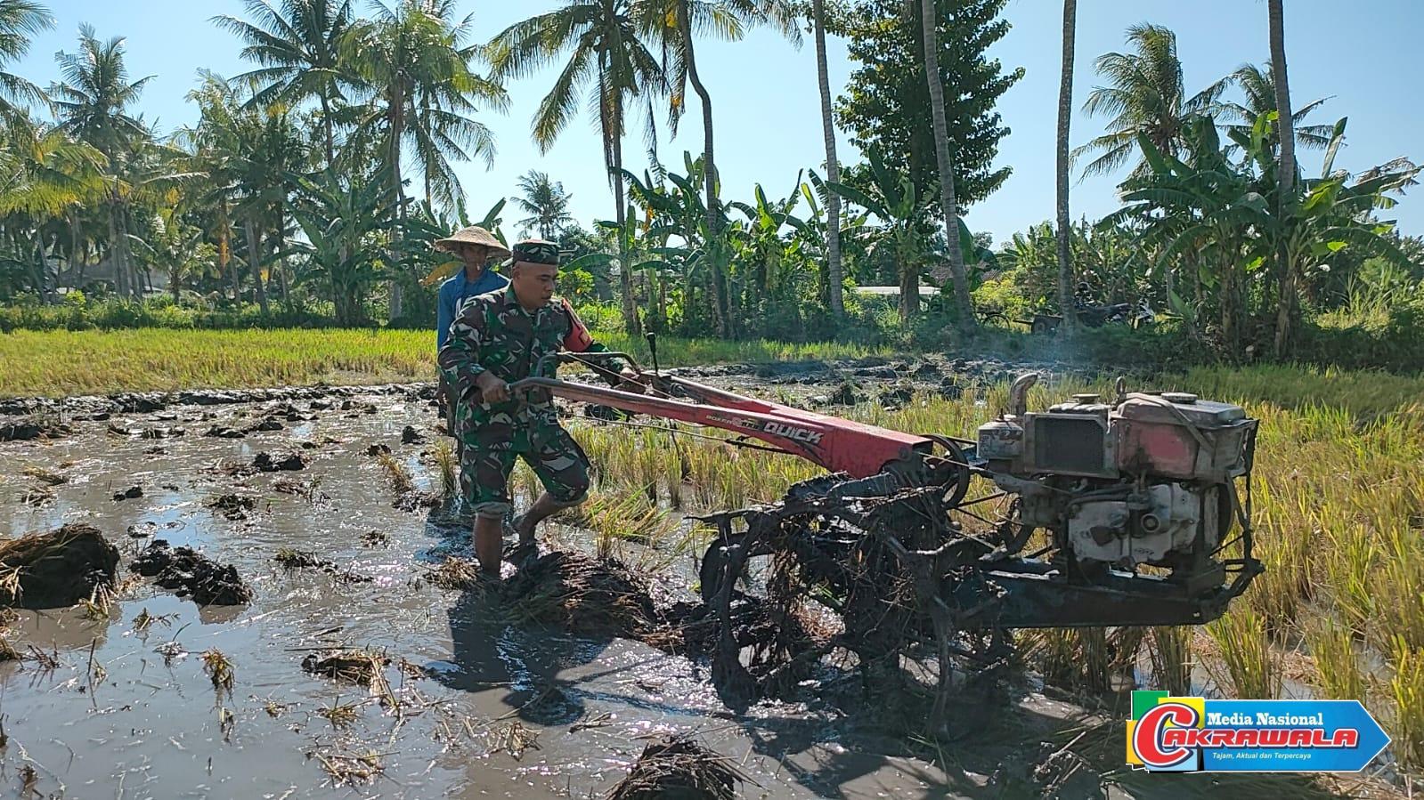 Babinsa 0822/14 Dampingi Petani Lakukan Pengolahan Tanah Sawah