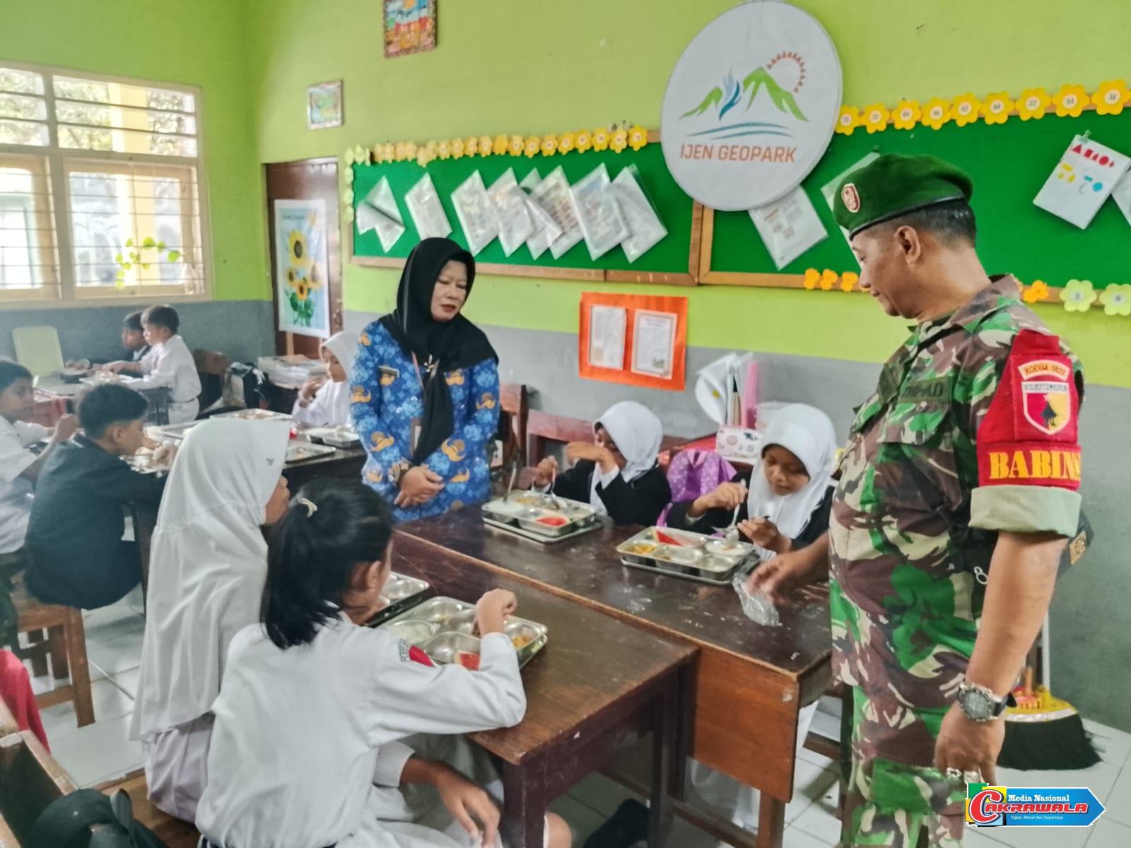 Babinsa 0822 Dampingi Distribusi 3.776 Paket Makanan Bergizi Gratis di Bondowoso