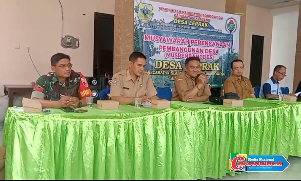 Bondowoso,MN Cakrawala-Desa Leprak, Klabang Dalam rangka mendukung perencanaan pembangunan yang partisipatif dan berkelanjutan, Babinsa Koramil 0822/15 Klabang Kopka Rudy Handoko menghadiri kegiatan Musyawarah Rencana Pembangunan Desa (Musrenbangdes) Tahun Anggaran 2027 yang digelar di Balai Desa Leprak, Kecamatan Klabang, Kabupaten Bondowoso, Senin (26/01/2026).