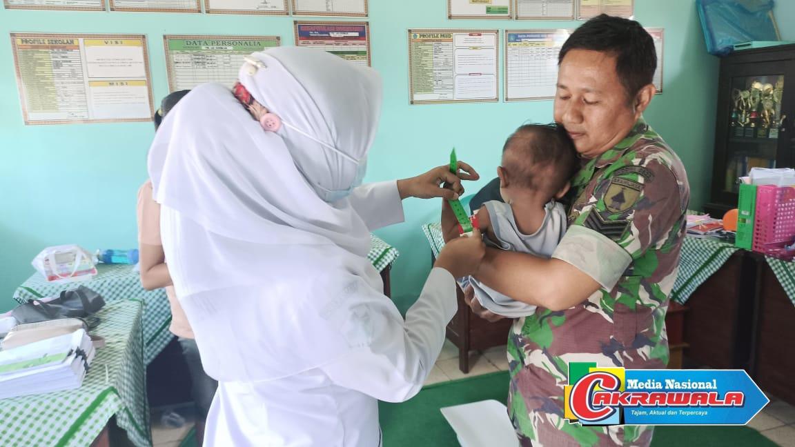 Dengan sigap, Babinsa dan bidan desa mendatangi balita satu per satu untuk melakukan pengukuran tinggi badan, berat badan, serta memberikan edukasi kepada para ibu terkait pentingnya gizi seimbang. Kegiatan yang berlangsung di balai desa ini dihadiri puluhan warga yang antusias mengikuti pemeriksaan dan penyuluhan.