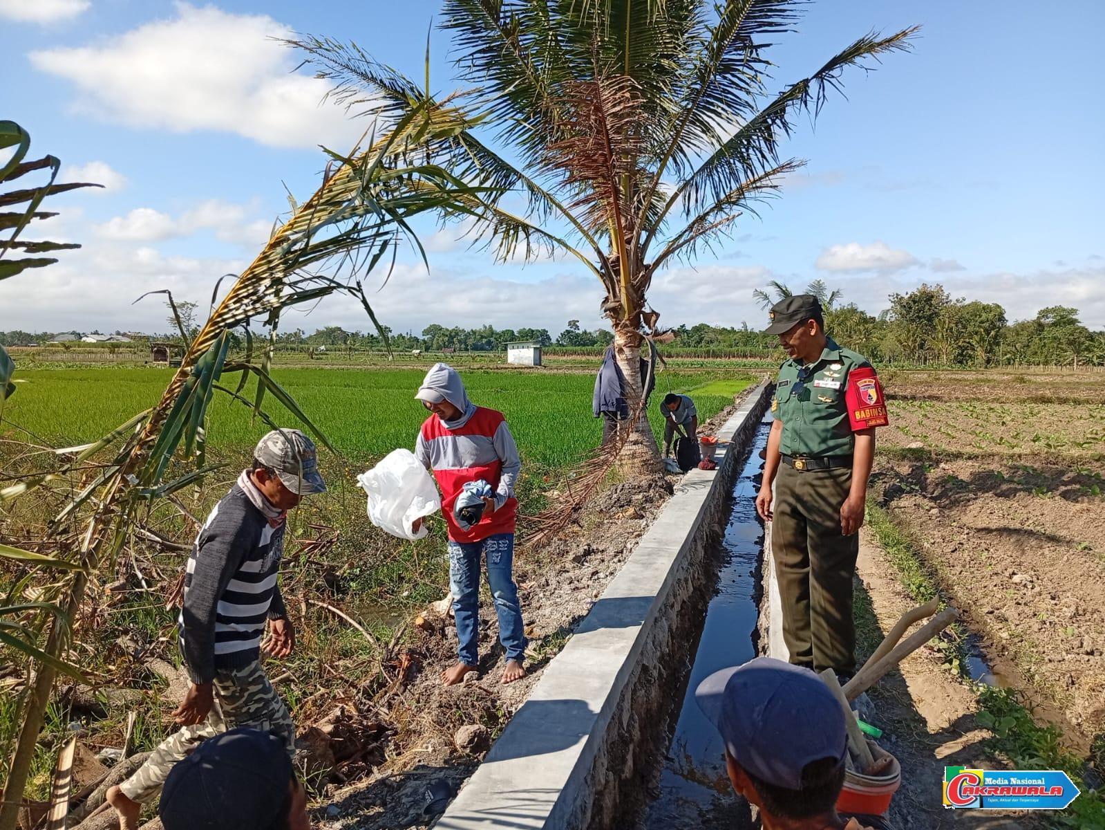 Bondowoso,Cakrawala-Komitmen TNI dalam mendukung pembangunan desa kembali terlihat saat Babinsa Desa Koncer Kidul, Serka Lugito, bersama Penyuluh Pertanian Lapangan (PPL) setempat, melakukan pendampingan dan pengecekan langsung pembangunan saluran irigasi di Dusun Gentenggan RT 23 RW 06, Desa Koncer Kidul, Kecamatan Tenggarang, Kabupaten Bondowoso, Sabtu pagi (2/8/2025).