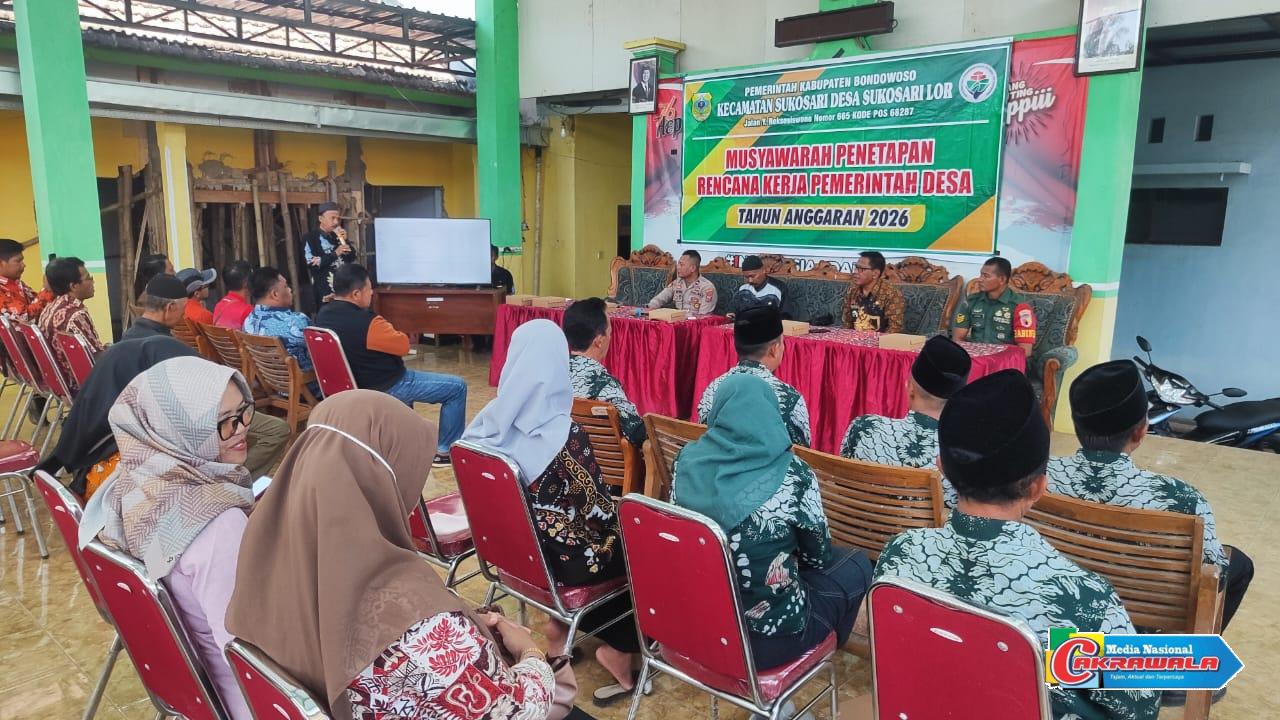 Bondowoso, MN Cakrawala – Musyawarah Desa (Musdes) untuk penyusunan Rencana Kerja Pemerintah Desa (RKP) tahun 2026 serta revitalisasi Badan Usaha Milik Desa (BUMDes) Sukosari Lor, Kecamatan Sukosari, digelar di Balai Desa Sukosari Lor, Kamis (2/10). Kegiatan ini dihadiri Babinsa Sukosari Lor, Serka Usman, bersama jajaran perangkat desa, tokoh masyarakat, dan unsur terkait.