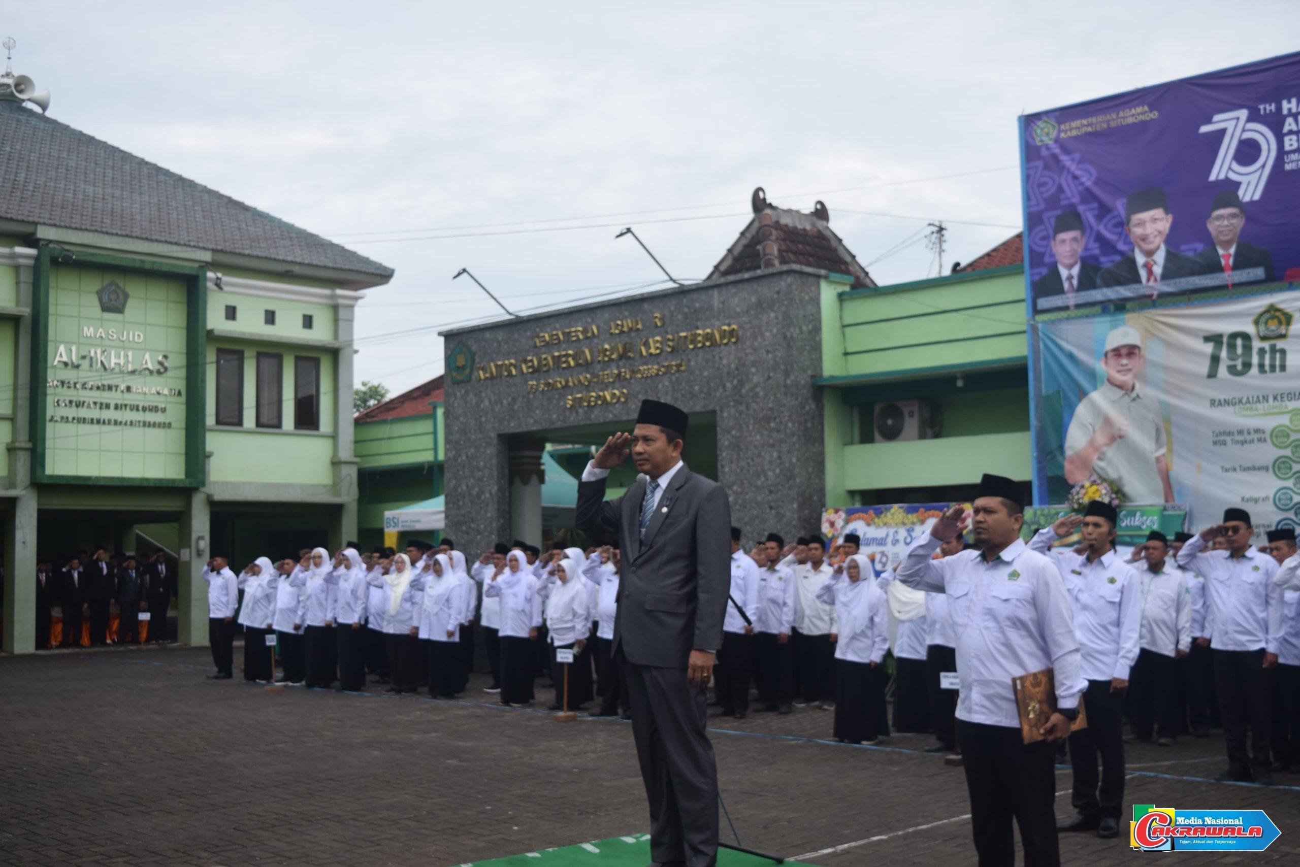 Dalam amanahnya Kepala Kantor Kemenag Situbondo Dr. H. Muhammad Mudafar yg menjadi inspektur Upacara HAB ke 79 menyampaikan pentingnya hidup Rukun dan sikap moderasi Beragama dalam Beragama, berbangsa dan bernegara.