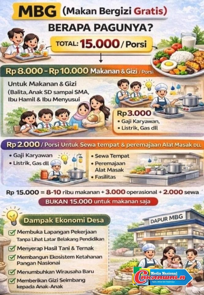 Angka Rp.13.000 hingga Rp.15.000 per porsi yang selama ini beredar di masyarakat bukanlah murni untuk bahan menu makanan MBG saja,akan tetapi Rp.3.000 dialokasikan untuk biaya operasional Satuan Pelayanan Pemenuhan Gizi (SPPG), mencakup insentif relawan, kebutuhan listrik, air, gas, serta distribusi logistik. Sementara Rp.2.000 diperuntukkan sewa fasilitas dan peralatan dapur.