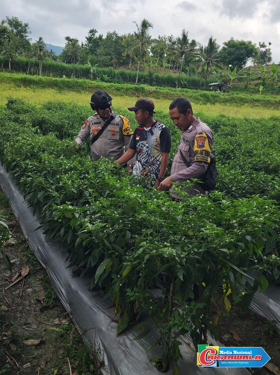 Bondowoso,Cakrawala– Bhabinkamtibmas Polsek Taman Krocok Polres Bondowoso Polda Jawa Timur Bripka Jefry. A sebagai Penggerak Ketahanan Pangan di desa binaanya desa Sumber Kokap Kecamatan Taman Krocok menyambangi para petani di kebun.