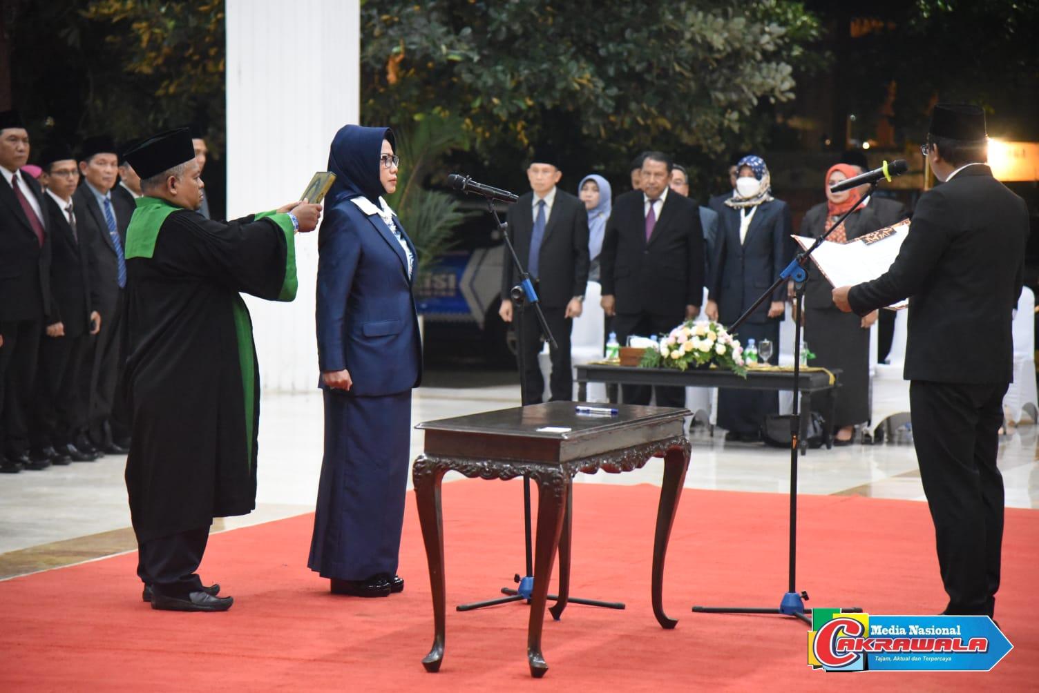 Sidoarjo, MN Cakrawala– Bupati Sidoarjo H. Ahmad Muhdlor S.IP akhirnya mempercayakan Fenny Apridawati sebagai Sekda Sidoarjo. Jumat malam, (22/3), mantan Kepala Dinas Kesehatan Sidoarjo itu dilantik di pendopo Delta Wibawa. Fenny dilantik bersama tiga pejabat Pimpinan Tinggi Pratama lainnya. Yakni Makhmud sebagai Asisten Perekonomian dan Pembangunan Setda Sidoarjo, Dwijo Prawito sebagai Kepala Dinas Perikanan Sidoarjo serta Budi Basuki sebagai Kepala BKD Sidoarjo.