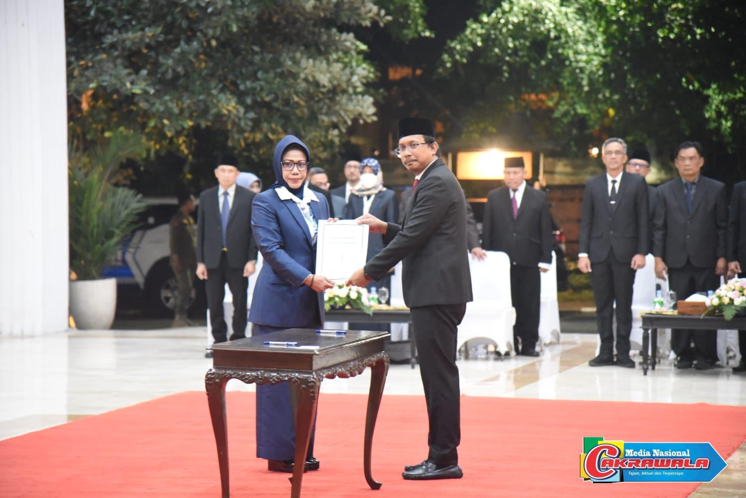 Sidoarjo, MN Cakrawala– Bupati Sidoarjo H. Ahmad Muhdlor S.IP akhirnya mempercayakan Fenny Apridawati sebagai Sekda Sidoarjo. Jumat malam, (22/3), mantan Kepala Dinas Kesehatan Sidoarjo itu dilantik di pendopo Delta Wibawa. Fenny dilantik bersama tiga pejabat Pimpinan Tinggi Pratama lainnya. Yakni Makhmud sebagai Asisten Perekonomian dan Pembangunan Setda Sidoarjo, Dwijo Prawito sebagai Kepala Dinas Perikanan Sidoarjo serta Budi Basuki sebagai Kepala BKD Sidoarjo.