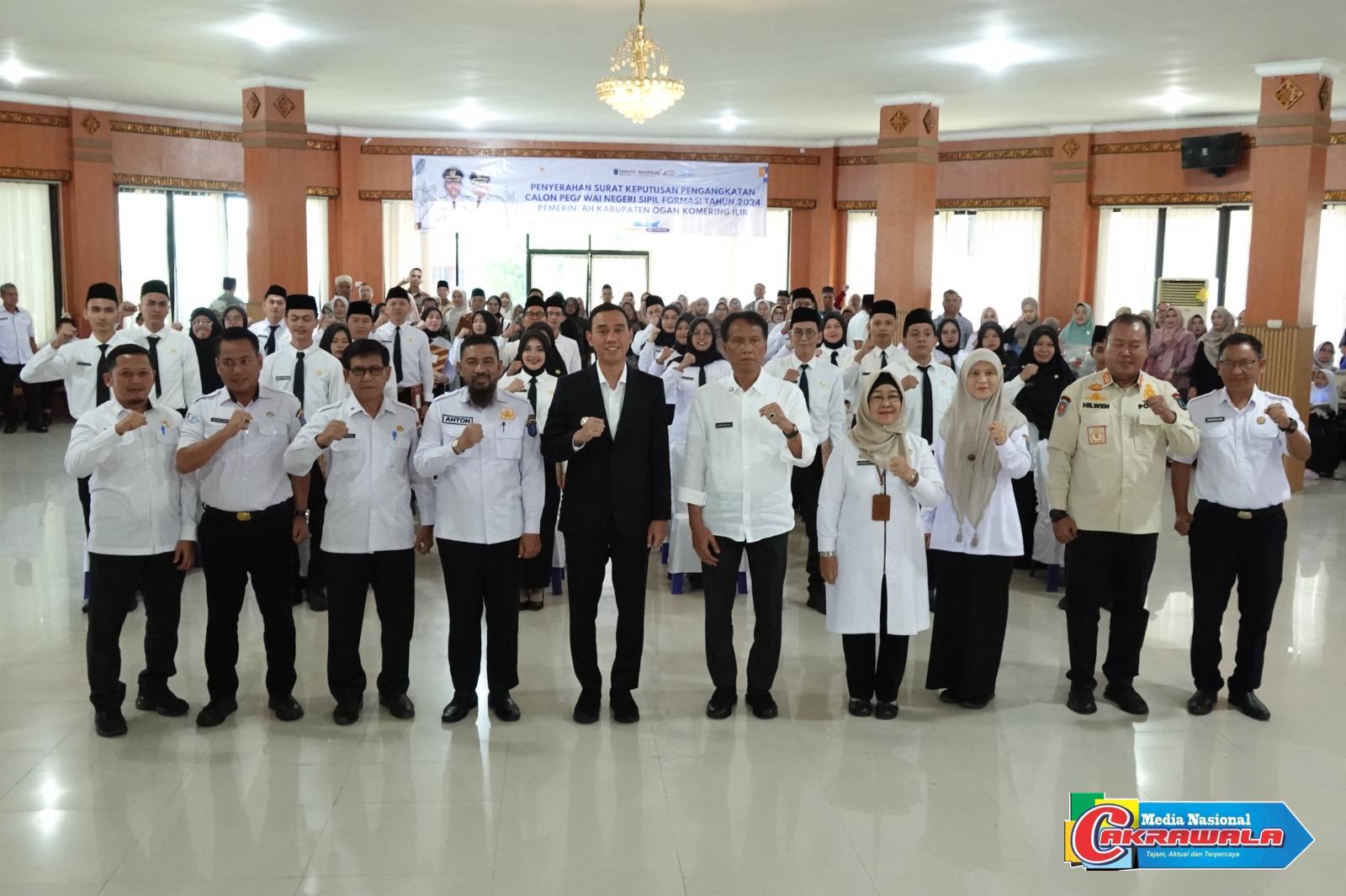 Medianasionalcakrawala.com, Ogan Komering Ilir-Kabupaten Ogan Komering Ilir (OKI) menjadi daerah tercepat di Provinsi Sumatera Selatan dalam penyerahan Surat Keputusan (SK) Calon Pegawai Negeri Sipil (CPNS) formasi tahun 2024. Acara penyerahan SK CPNS ini digelar pada hari Rabu, (16/4/25), bertempat di Kantor Bupati OKI dan diserahkan langsung oleh Bupati OKI, H. Muchendi Mahzareki, didampingi Asisten serta Kepala OPD di Lingkungan Pemkab OKI dan juga para keluarga CPNS yang tampak antusias dan bahagia. Bupati OKI H. Muchendi menyampaikan rasa bangga atas keberhasilan Pemkab OKI menjadi yang pertama menyerahkan SK CPNS tahun ini.