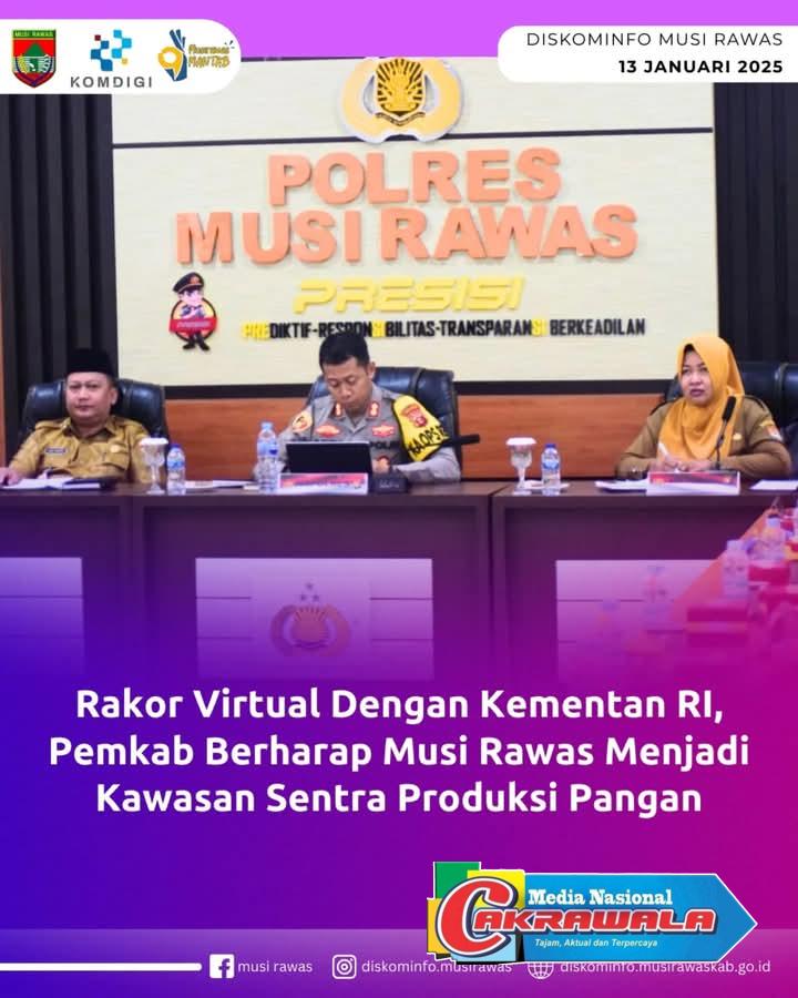 Media Nasional Cakrawala.com,Musi Rawas-Bupati Musi Rawas, Hj Ratna Machmud menghadiri Rapat Koordinasi Bidang Pangan Bersama Menteri Koordinator Bidang Pangan, Senin (13/01/2025). Bertempat di Griya Agung Palembang.