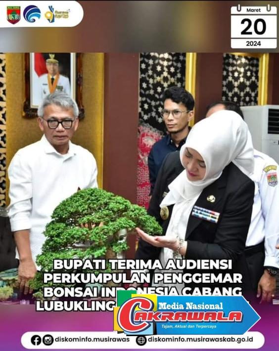 Media Nasional Cakrawala.com, Musi Rawas-Bupati Musi Rawas Hj. Ratna Machmud menerima audiensi Perkumpulan Penggemar Bonsai Indonesia (PPBI) cabang Lubuklinggau-Musi Rawas di Pendopoan Rumah Dinas Bupati Musi Rawas, Rabu (20/03/2024).