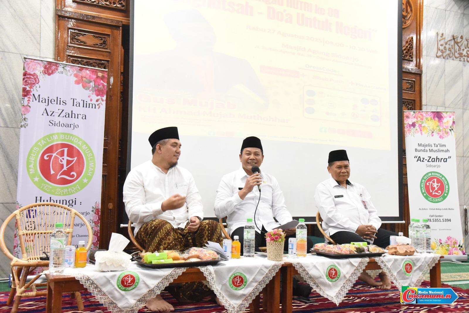 Sidoarjo, MN Cakrawala– Bupati Sidoarjo, H. Subandi, menghadiri acara Istighosah dan doa bersama dalam rangka memperingati Hari Ulang Tahun (HUT) ke-80 Republik Indonesia yang diselenggarakan oleh Majelis Ta’lim Bunda Muslimah Az-Zahra Sidoarjo. Kegiatan berlangsung khidmat di Masjid Agung Sidoarjo, Rabu (27/8/2025), dan diikuti ratusan jamaah pengajian dari berbagai kalangan.