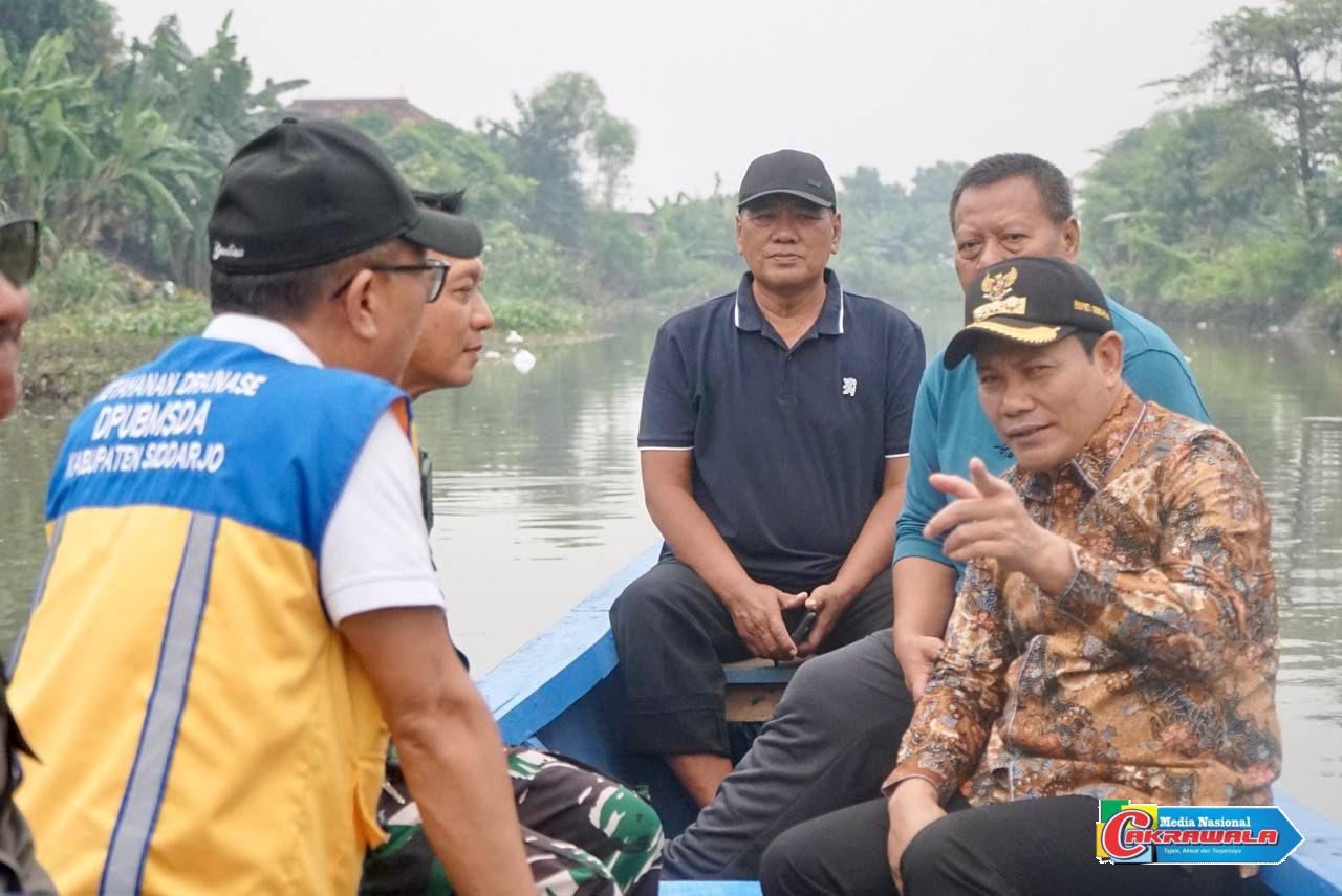 Sidoarjo, MN Cakrawala– Bupati Sidoarjo H. Subandi, SH,.Kn bersama Kepala Dinas PU Binamarga serta beberapa pejabat di Sidoarjo menyusuri sungai Mbah Gepuk, Jum’at (20/06/2025). Kegiatan ini dilakukan dalam upaya normalisasi sungai untuk menekan resiko terjadinya banjir, utamanya kawasan Tanggulangin dan Candi yang kerap menjadi langganan banjir setiap kali musim penghujan.