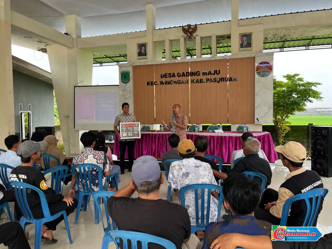 PASURUAN, MN Cakrawala-Polres Pasuruan melalui Satuan Reserse Narkoba Polres Pasuruan memberikan penyuluhan tentang bahaya penyalahgunaan dan peredaran gelap narkoba kepada 50 perangkat Desa Gading Maju, Kecamatan Winongan, Jumat (21/11/2025).