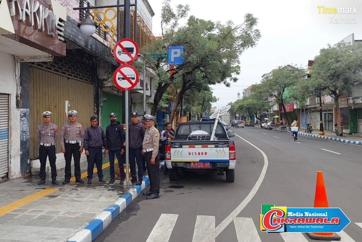 Polresta Pasuruan,MN Cakrawala– Dalam rangka meningkatkan keselamatan dan ketertiban berlalu lintas di wilayah hukum Polres Pasuruan Kota, Unit Keamanan dan Keselamatan (Kamsel) Satuan Lalu Lintas (Satlantas) Polres Pasuruan Kota bekerja sama dengan Dinas Perhubungan Kota Pasuruan melaksanakan kegiatan pemasangan rambu larangan.