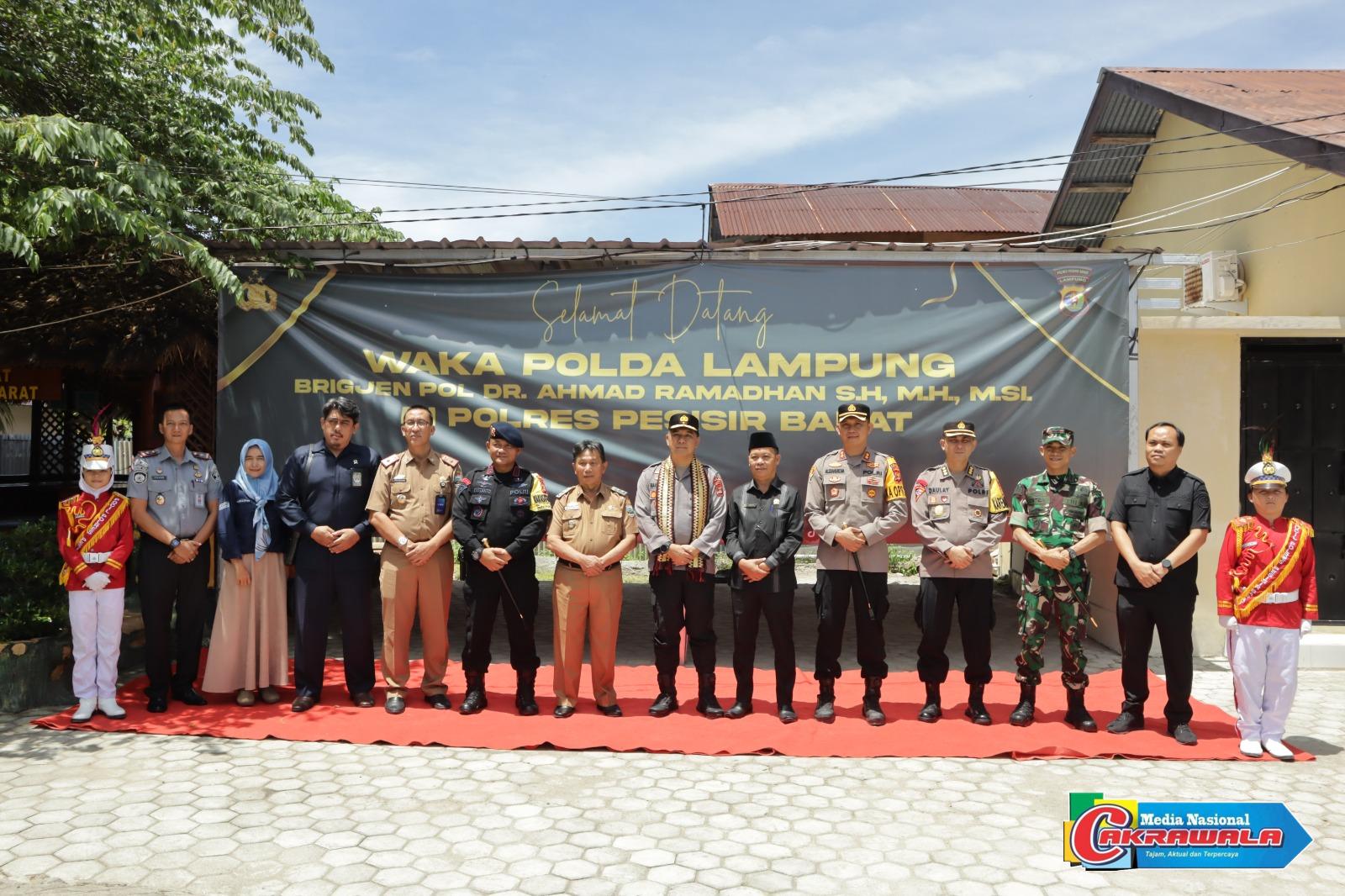 Kapolres Pesisir Barat AKBP Alsyahendra S.I.K.,M.H. menyambut baik kunjungan kerja Wakapolda Lampung Brigjen Pol Dr. Ahmad Ramadhan, S.H.,M.H.,M.Si. yang di dampingi oleh Karoops Polda Lampung Kombes Pol Ardiansyah Daulay, S.I.K., M.H. dan Dansat Brimob Polda Lampung Kombes Pol Yustanto Mujiharso S.Ik.,M.Si.