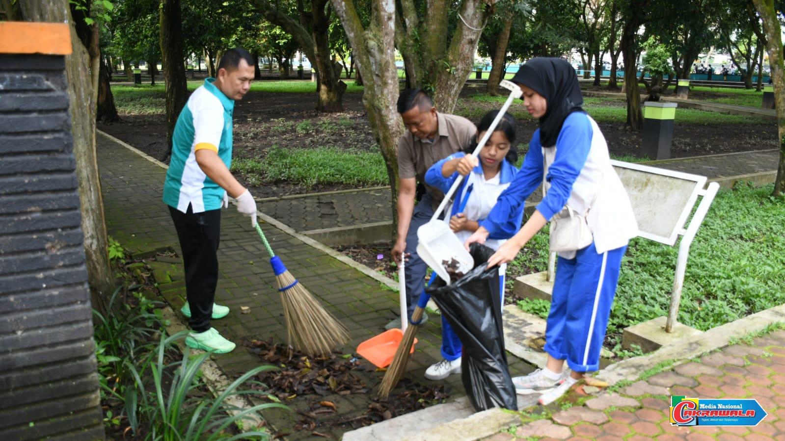 Usai apel, kegiatan dilanjutkan dengan aksi bersih-bersih di sejumlah titik yang telah ditentukan di sekitar kawasan Pendopo Bupati. Para peserta yang berjumlah sekitar 250 orang terlihat membawa berbagai perlengkapan seperti sapu lidi, kantong sampah, sabit hingga kendaraan pengangkut sampah untuk membersihkan area yang menjadi sasaran kegiatan.
