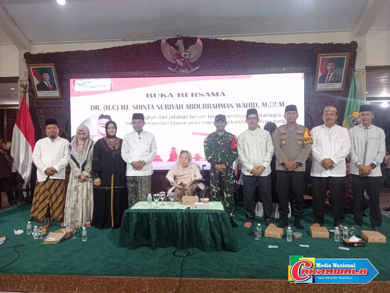 Bondowoso,Cakrawala – Istri Presiden Ke-4 RI, Dr. H. C. Hj. Sinta Nuriyah Wahid, M. Hum, mengadakan kunjungan ke Kabupaten Bondowoso pada Rabu, 12 Maret 2025. Acara ini berlangsung di Pendopo Bupati Bondowoso dan dihadiri oleh berbagai tokoh penting, termasuk Dandim 0822 Bondowoso, Letkol Arh Achmad Yani, SE, M.Han. Acara yang bertajuk “Pangkat dan Jabatan Belum Tentu Membuatmu Bahagia, Namun Iman dan Taqwa Akan Mengantarkanmu Menuju Surga” ini diikuti oleh sekitar 150 peserta dan diselenggarakan oleh Pj. Sekda Bondowoso, Dr. Fathur Rozi, M.Fil.I.