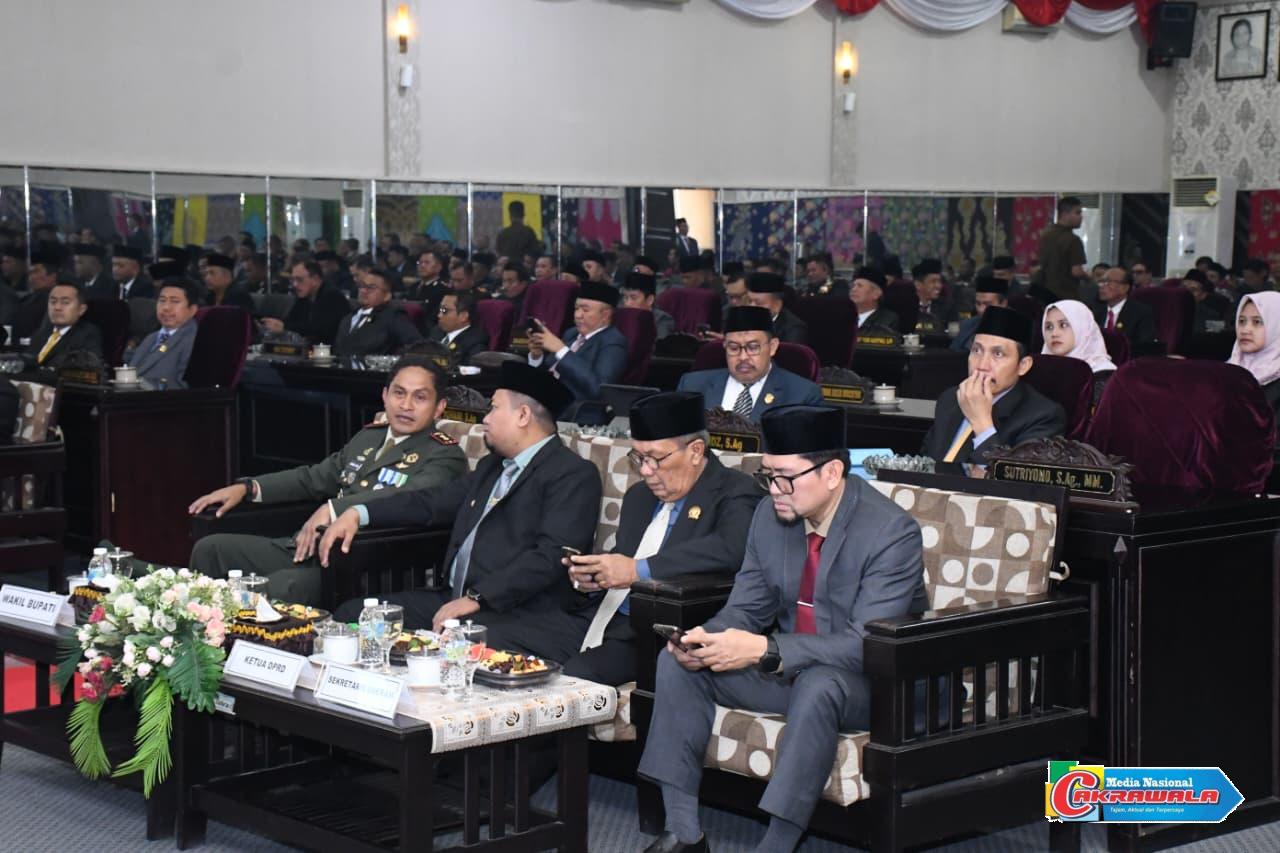 Bondowoso,Cakrawala – Jumat (15/8/2025) di Ruang Graha Paripurna DPRD Kabupaten Bondowoso, Jalan KH. R. As’ad Syamsul Arifin No. 100, Kecamatan Tenggarang, dengan dihadiri sekitar 100 peserta dari unsur Forkopimda, OPD, dan tamu undangan. Komandan Kodim 0822 Bondowoso, Letkol Arh Achmad Yani, S.E., M.Han., turut menghadiri Rapat Paripurna Istimewa DPRD Kabupaten Bondowoso dalam rangka mendengarkan pidato kenegaraan Presiden Republik Indonesia pada Sidang Tahunan MPR RI dan Sidang Bersama DPR RI dan DPD RI Tahun 2025.