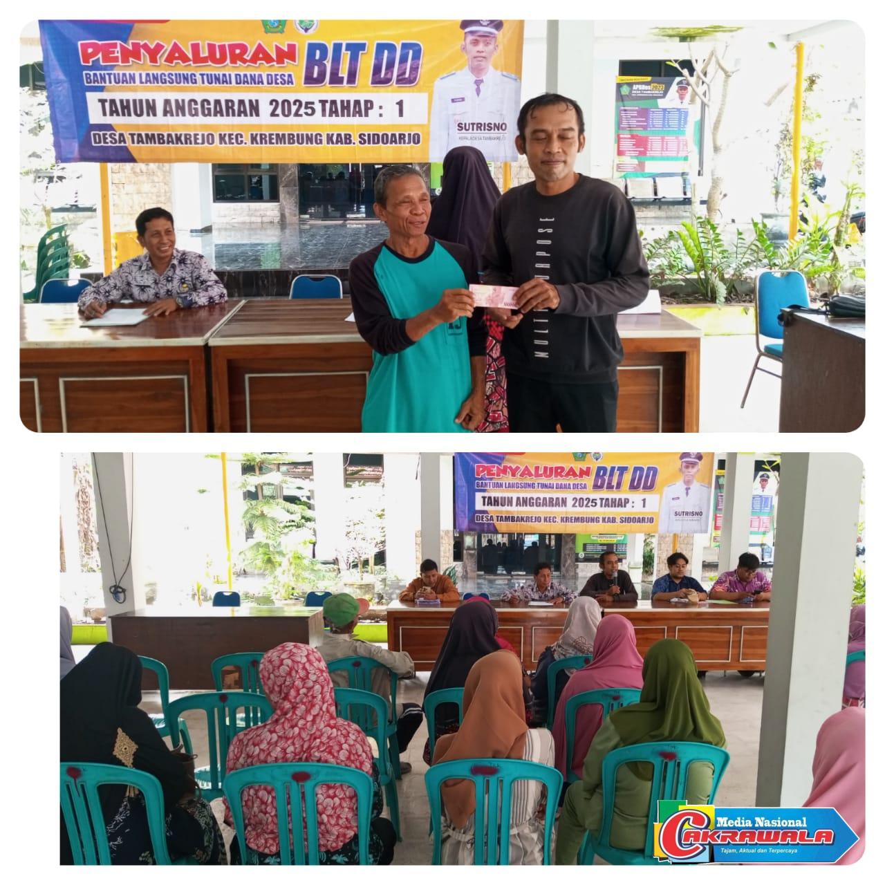 Program pemerintah bantuan langsung tunai (BLT-DD) ini disampaikan kepala desa Tambakrejo H. Sutrisno, sudah dilakukan Musyawarah Desa dengan mekanisme dan kategori yang di harapkan dari pemerintah pusat sehingga data penetapan warga penerima (Bantuan Langsung Tunai) BLT-DD ini telah diseleksi dan sudah diverifikasi data dari Rt/Rw yang masuk sesuai dengan ketentuan, sebanyak 30 KPM BLT-DD (Bantuan Langsung Tunai) mendapatkan sebesar Rp. 300.000 setiap bulannya, Total yang disalurkan selama tiga bulan Rp. 900.000,- (Sembilan Ratus Ribu Rupiah) secara tunai bagi penerima.