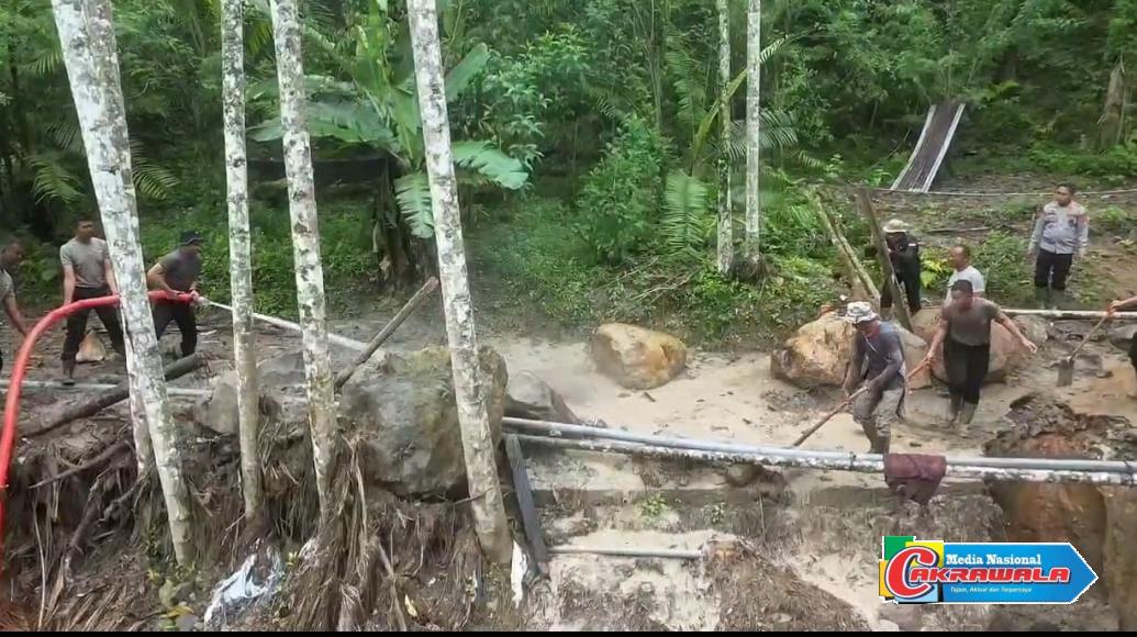Bener Meriah,MN Cakrawala-Kepolisian Resor Bener Meriah bersama personel Satuan Brimob Polda Aceh turun langsung membantu masyarakat membersihkan akses jalan yang tertutup material banjir dan longsor di Kampung Setie, Kecamatan Timang Gajah, Kabupaten Bener Meriah. Aksi kemanusiaan ini menjadi bagian dari upaya percepatan pemulihan pascabencana sekaligus simbol kehadiran negara di tengah kesulitan warga.