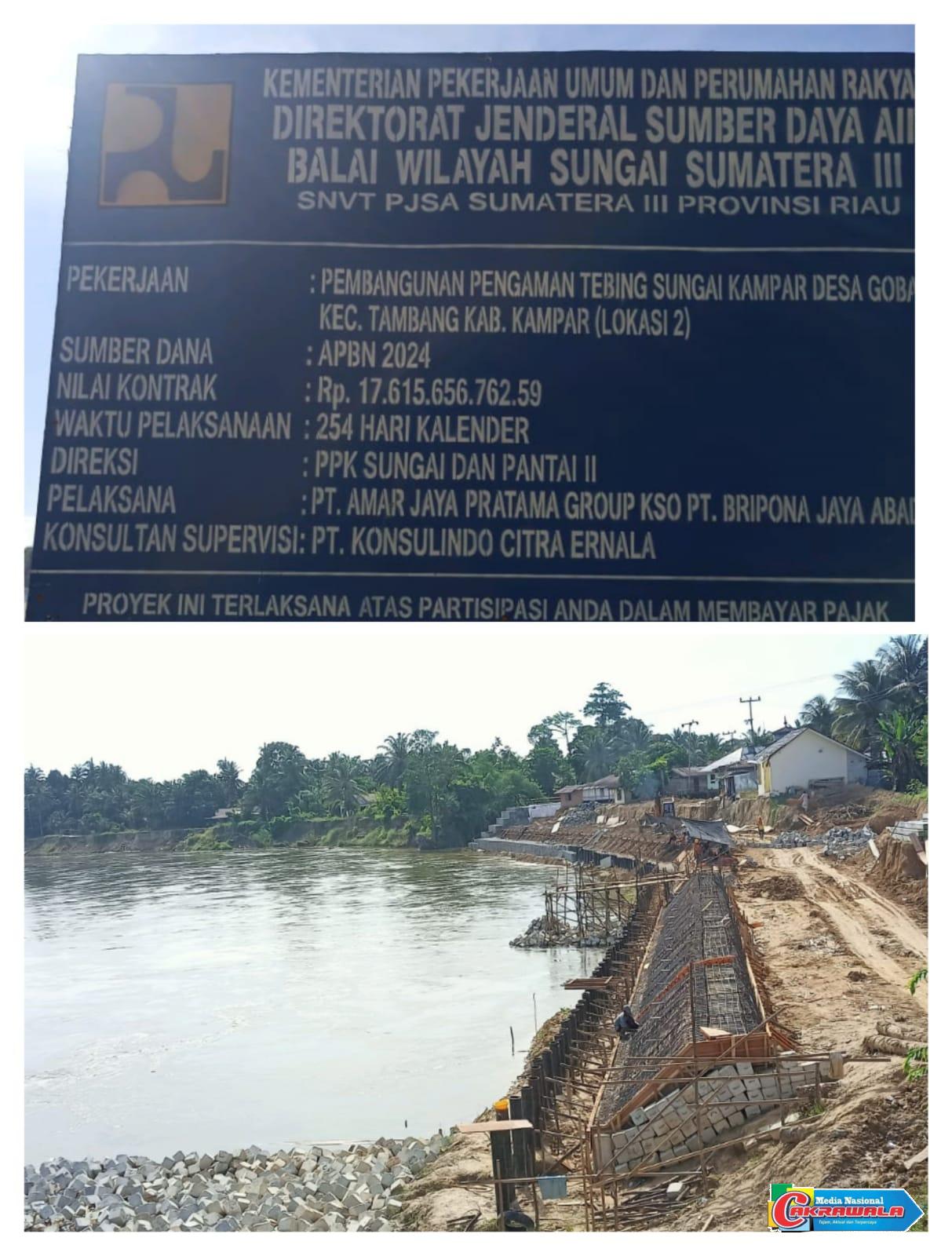Pekanbaru,Cakrawala-Dugaan penyimpangan dalam proyek pembangunan turap senilai lebih dari Rp17 miliar di Desa Gobang, Kecamatan Tambang, Kabupaten Kampar, makin panas. Pasalnya, hingga kini PT Amar Jaya Pratama Group selaku kontraktor pelaksana tidak juga memberikan jawaban atas surat konfirmasi resmi yang dilayangkan LSM Kesatuan Pelita Bangsa (KPB) terkait berbagai temuan teknis mencurigakan di lapangan.