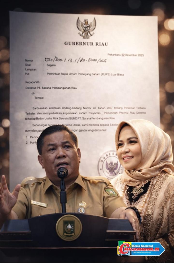 Pekanbaru,Cakrawala-Pencopotan Direktur Utama PT Sarana Pembangunan Riau (SPR) melalui RUPS Luar Biasa atas permintaan Plt Gubernur Riau SF Hariyanto kembali membuka luka lama tata kelola Badan Usaha Milik Daerah (BUMD). Alih-alih menghadirkan optimisme, keputusan ini justru memantik kecurigaan publik: apakah PT SPR benar-benar sedang dibenahi, atau hanya mengalami perpindahan kekuasaan dari satu lingkaran ke lingkaran lain?