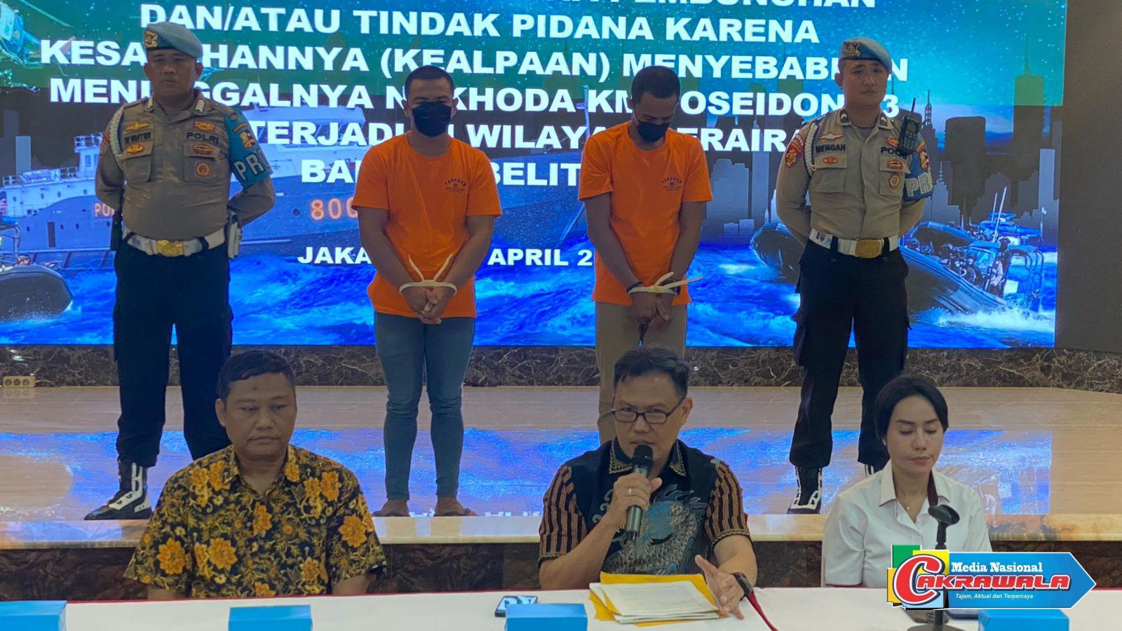 Jakarta,Cakrawala– Direktorat Kepolisian Perairan dan Udara (Ditpolair) Korpolairud Baharkam Polri berhasil mengungkap kasus penggelapan dan dugaan pembunuhan yang terjadi di kapal KM Poseidon 03. Peristiwa tersebut menimbulkan kerugian materil ratusan juta rupiah serta dugaan hilangnya nyawa manusia di tengah laut.