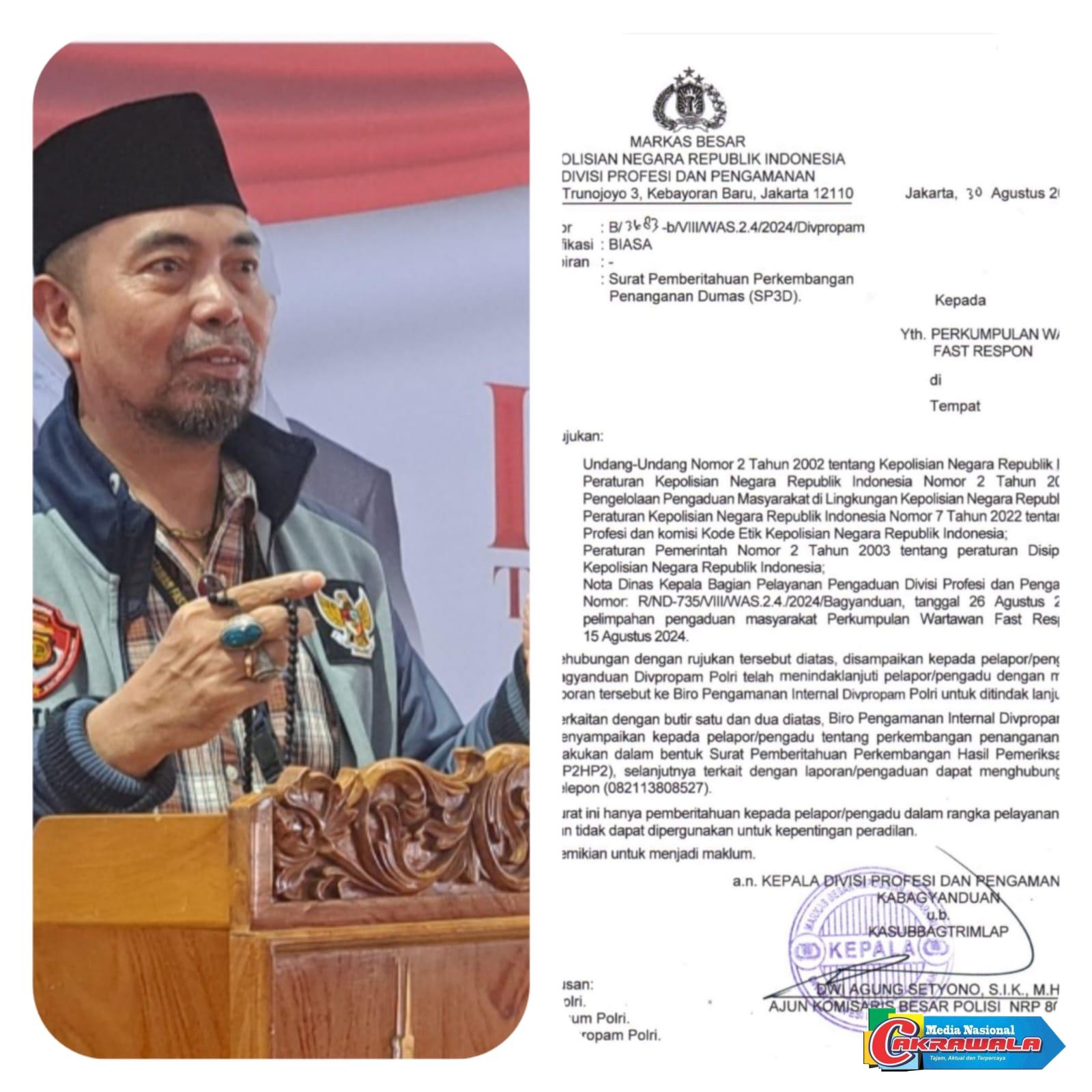 Menurut AKBP Dwi Agung Setyono, surat Pemberitahuan Perkembangan Dumas, telah disampaikan kepada Pengadu Pengacara Fast Respon Counter Polri.