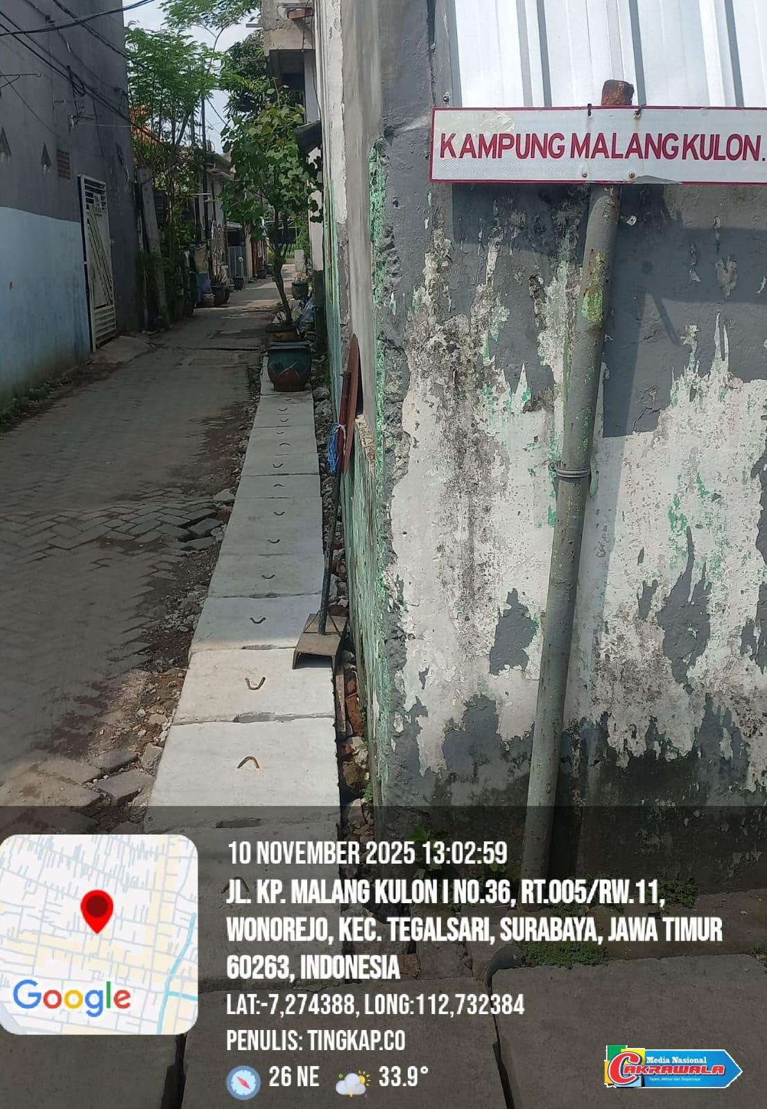 SURABAYA,Cakrawala-Melalui satuan kerja Kecamatan Bubutan, merealisasikan anggaran yang bersumber dari APBD Tahun 2025 atau dakel (dana kelurahan) Wonorejo Kecamatan Tegalsari.