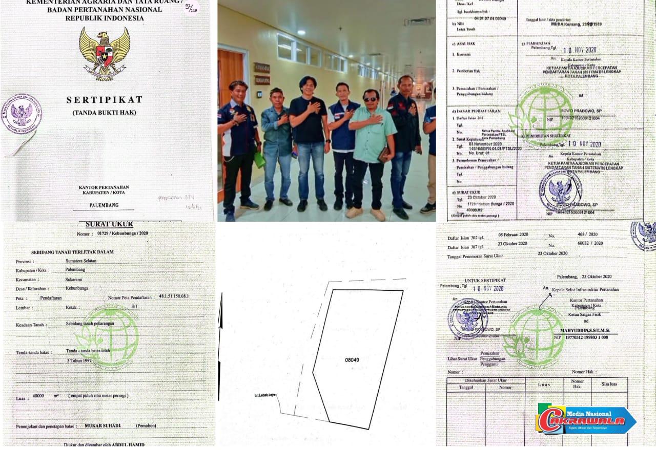 Selain praktik “ngecup tanah”, Budi menyebutkan bahwa proses sertifikasi di Kantor BPN Kota Palembang juga menjadi salah satu penyebab kerugian tersebut. Proses sertifikasi tanah seluas 40.000 m² yang diajukan Mukar Suhadi dengan alas hak dari 14 sporadik pemilik tanah awalnya diterima dan diakui tanpa bantahan hingga terbit Surat Keputusan (SK) Sertifikat atas namanya.