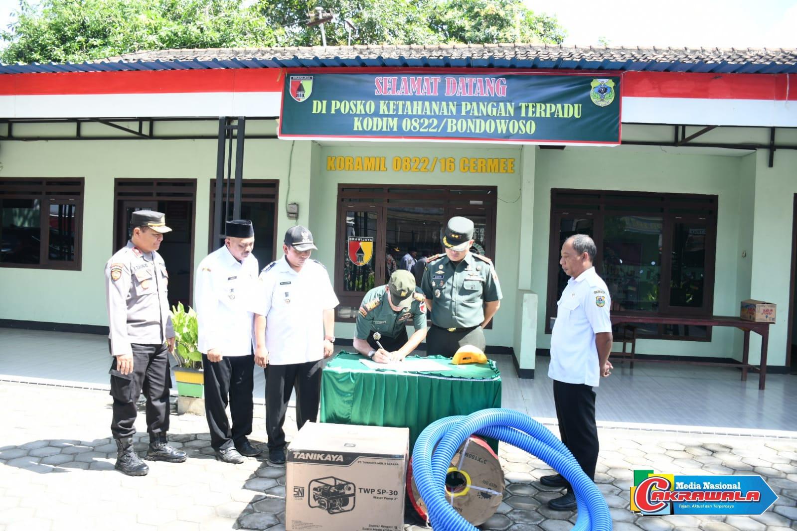 Dalam acara tersebut, Dandim 0822 bersama Distan Bondowoso dan Muspika Cermee secara resmi menyerahkan peminjaman 8 unit pompa air kepada perwakilan Poktan dan Babinsa.