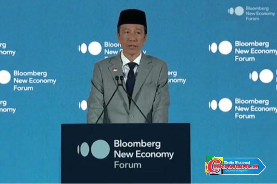 Singapura,Cakrawala-Bapak Ir H Joko Widodo Presiden Ke 7 RI berdiri di panggung Bloomberg New Economy Forum–bukan sebagai “tamu pinggiran” seperti yang diteriakkan para pembencinya, tetapi sebagai anggota kehormatan Dewan Penasihat forum itu sendiri,dan hari ini, ya baru saja, di Singapura– dunia mendengarkannya. Tentu saja Jokowi tak punya logat seperti seorang ‘native speaker’–tapi dengan bahasa Inggris yang tetap jernih–lelaki yang dikuyo-kuyo sebagian manusia toksik di negerinya sendiri itu menceritakan perjalanan sepuluh tahun yang tidak selalu mulus, tetapi selalu menuju satu arah: membangun fondasi bagi 280 juta jiwa.