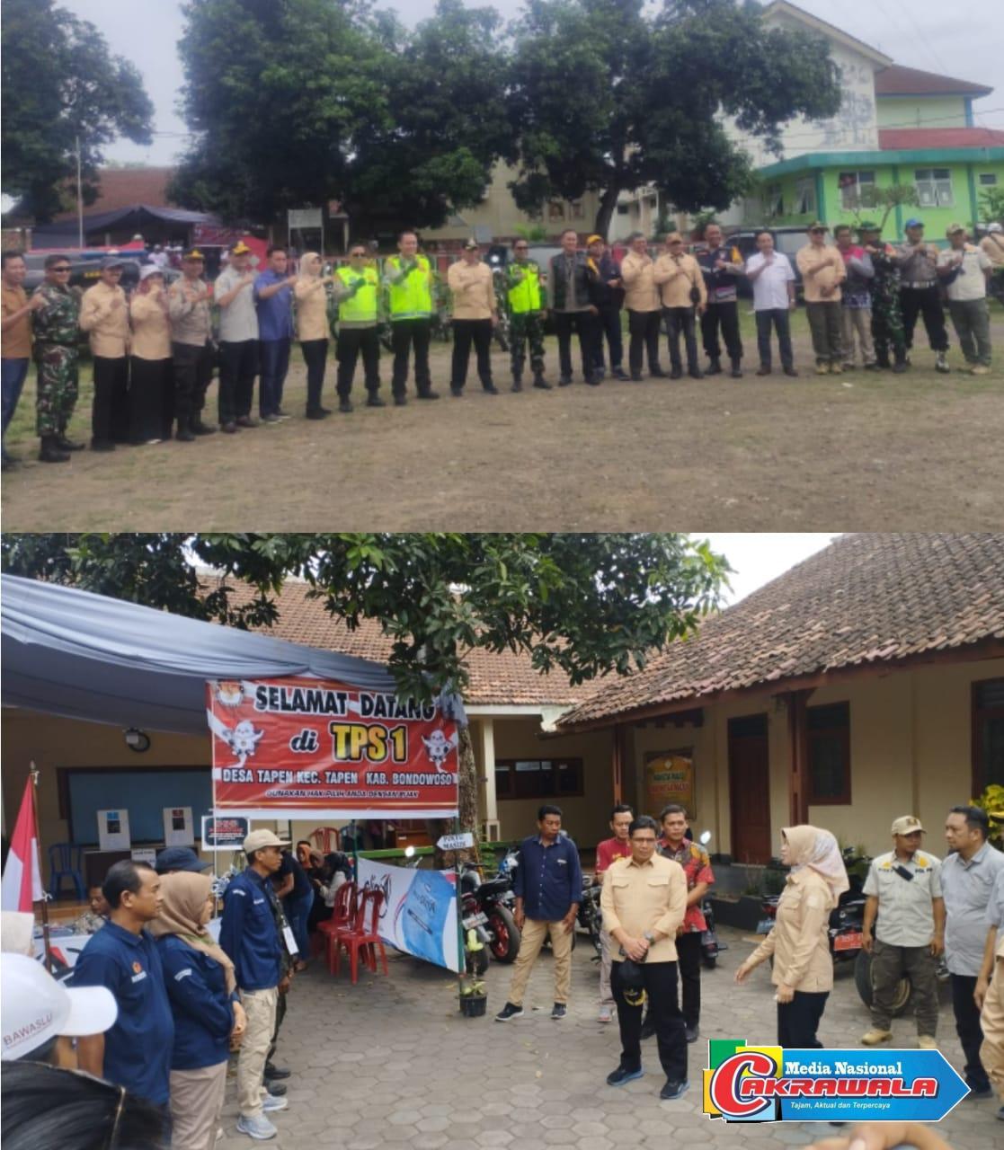Bondowoso,MNCakrawala-Pelaksanaan pemungutan suara pilkada dan pilgub serentak dipantau langsung oleh jajaran Forkopimda bondowoso,guna memastikan berjalan sesuai prosedur dan aman kondusip,salah satu sample yang dikunjungi adalalah desa tapen kecamatan tapen.