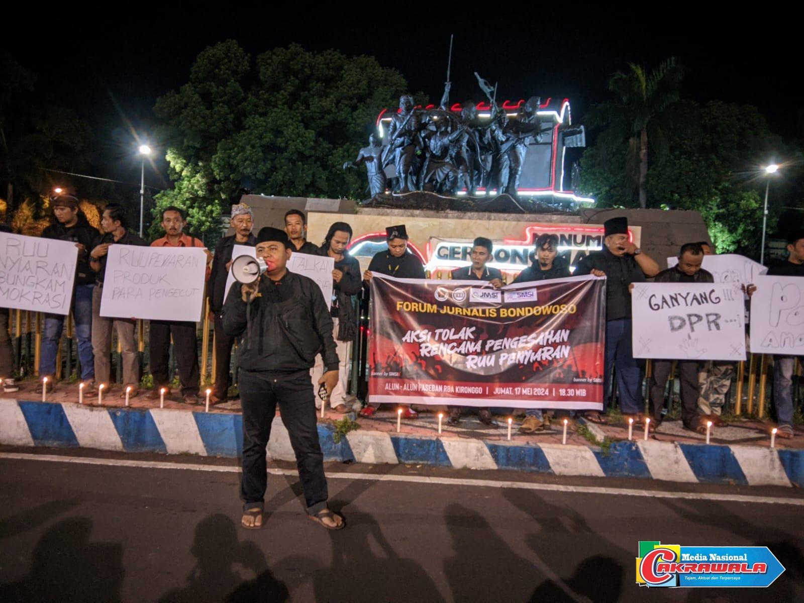 BONDOWOSO, MNCakrawala.com- Puluhan jurnalis dari berbagai Asosiasi di Kabupaten Bondowoso, Jawa Timur, melakukan aksi penolakan terhadap Revisi Undang-undang nomor 32 tahun 2002 atau UU Penyiaran.