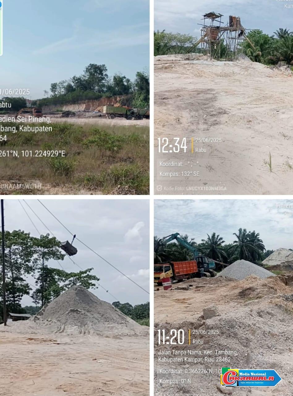 Kampar Riau,Cakrawala-Investigasi awak media mengungkap fakta mencengangkan: aktivitas tambang atau galian C ilegal menjamur di lima desa di Kecamatan Tambang, Kabupaten Kampar. Diduga kuat, kegiatan tersebut tidak mengantongi izin resmi alias ilegal, namun tetap beroperasi bebas tanpa hambatan. Lebih ironis lagi, Pemerintah Provinsi Riau, Pemerintah Kabupaten Kampar, dan aparat penegak hukum (APH) yang seharusnya menjadi pengawas dan penindak, justru terkesan tutup mata dan telinga.