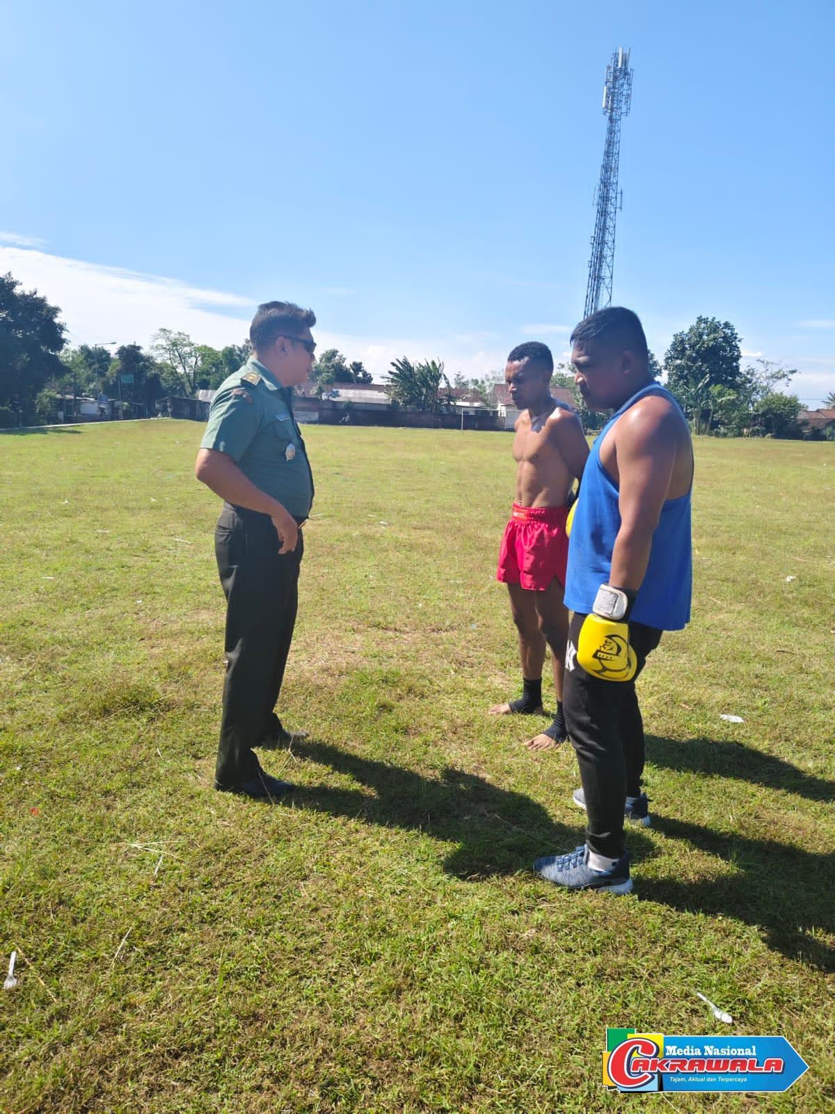 Bondowoso,MNCakrawala– Disela-sela latihan rutin di lapangan Petung Curahdami Bondowoso, Kasdim 0822 Bondowoso Mayor Inf Tanuri memberikan semangat dan motivasi kepada Praka Yulianus Imbir Prajurit terbaik dan berprestasi Atlit MMA (MIXED MARTIAL ARTS) yang bersangkutan menyiapkan diri akan mewakili Indonesia pada kejuaraan SI.C CUP 2024 Road To Thailand pada bulan ini, Rabu (5/6/2024).