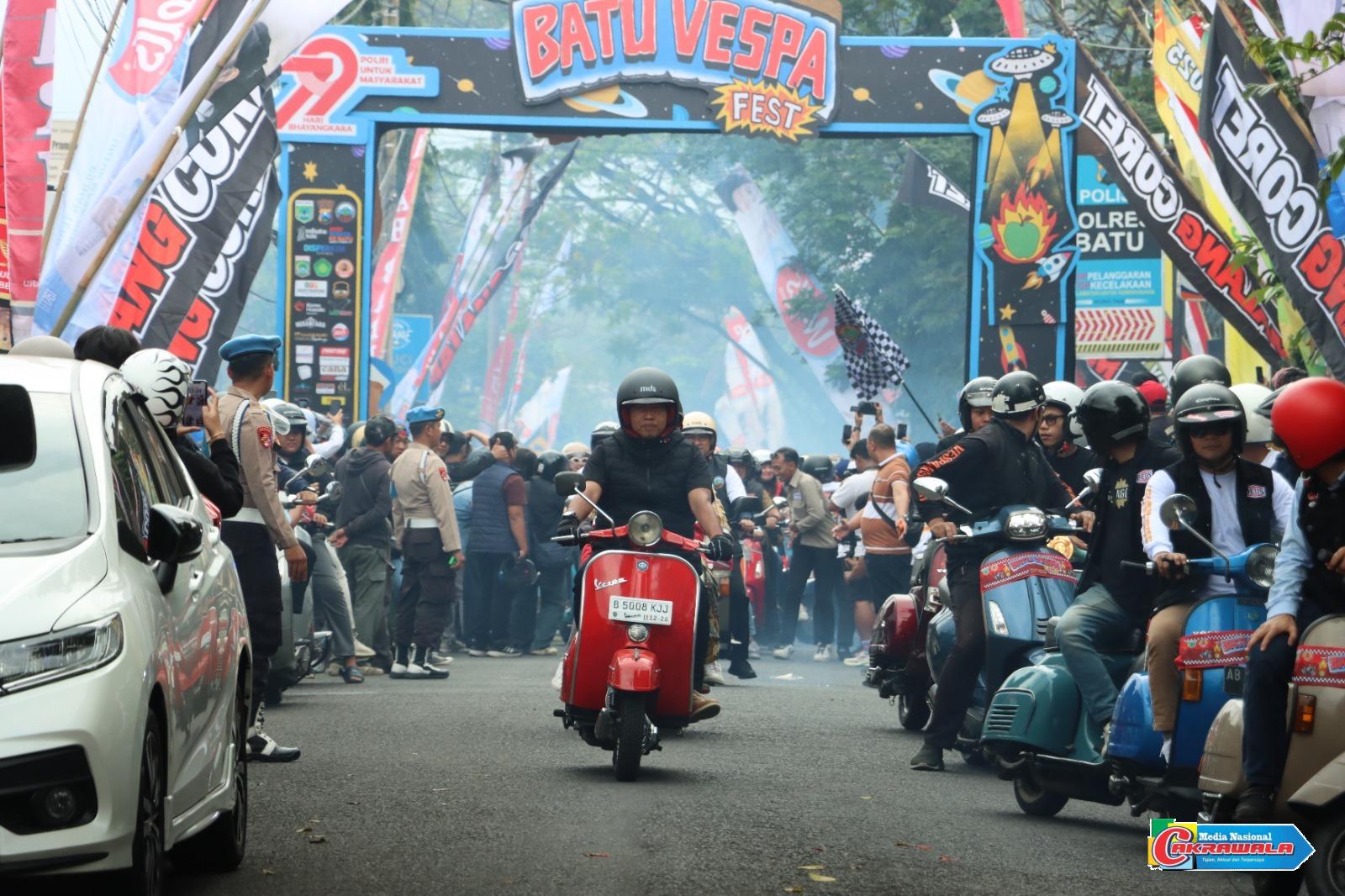 Kapolres Batu AKBP Andi Yudha Pranata secara langsung membuka dan memberangkatkan ratusan peserta Batu Vespa Fest 2025 untuk menikmati riding bersama mengeksplor wisata yang ada di Kota Batu.