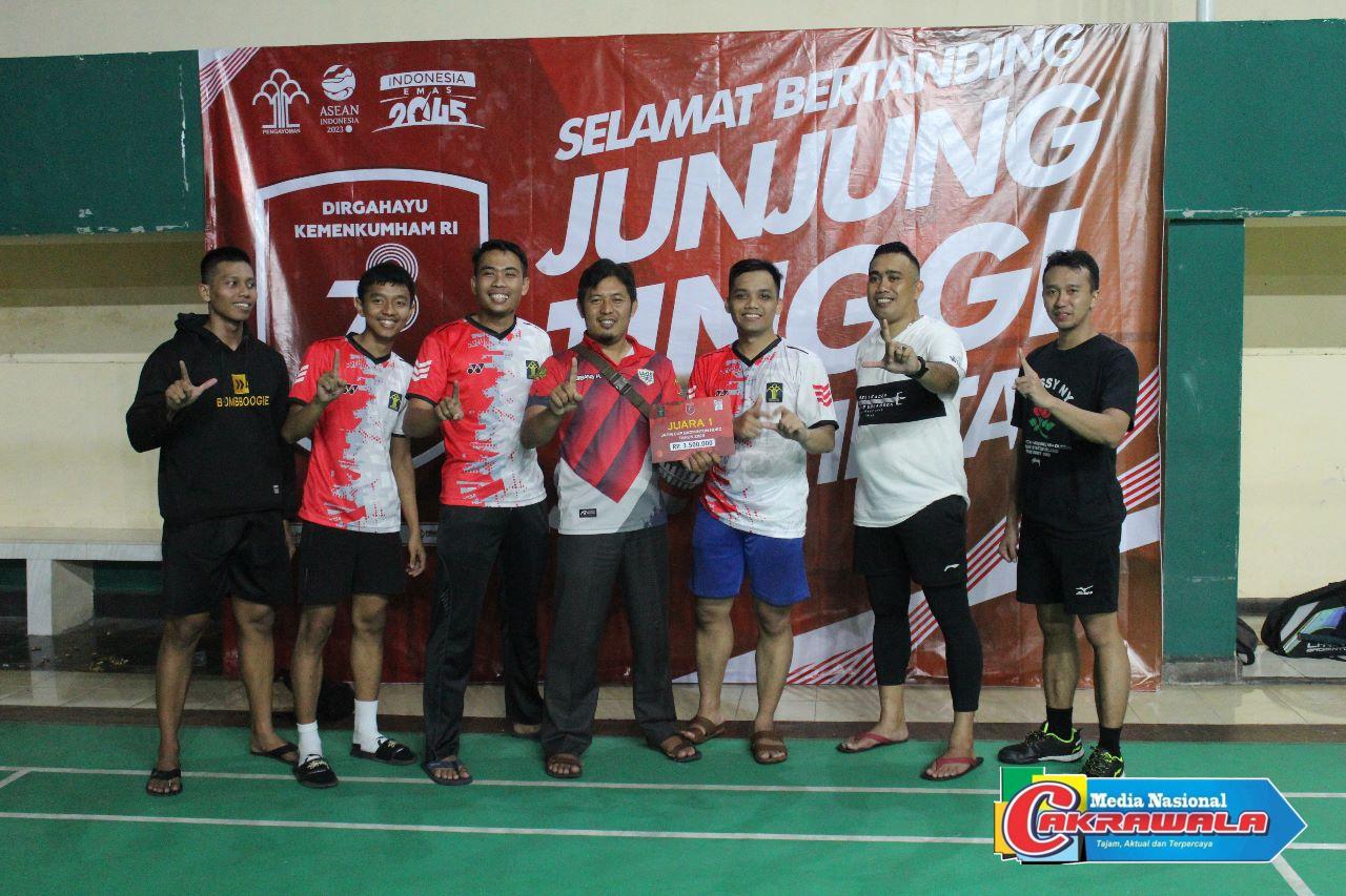 JEMBER, MN Cakrawala – Lima pegawai Lapas Jember turut menyumbangkan gelar juara di cabang olahraga bulutangkis dalam turnamen yang digelar pada Senin (24/07/2023) sebagai serangkaian peringatan Hari Dharma Karya Dhika (HDKD) ke 78 tahun ini. Turnamen bulutangkis yang diselenggarakan di Gor Argopuro, Kaliwates, Jember tersebut mempertemukan masing – masing 3 tim dari 6 Koordinator Wilayah (Korwil) se Jawa Timur.