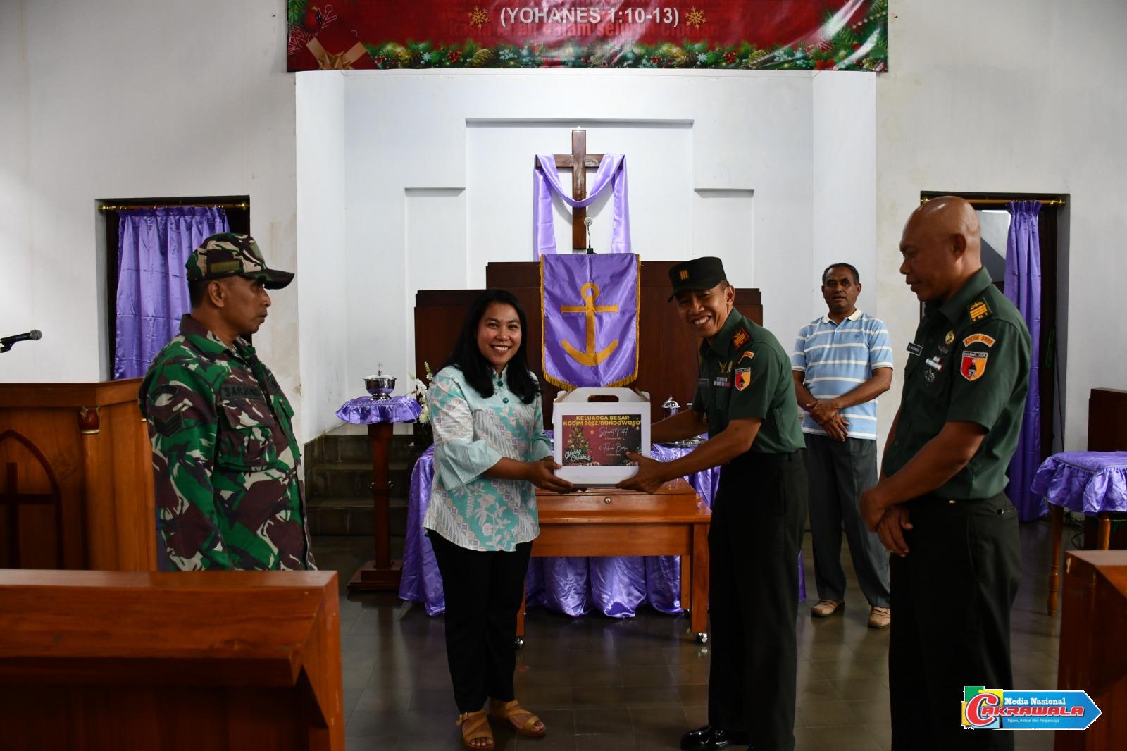 Bondowoso,Cakrawala – Dalam rangka menyambut Perayaan Hari Natal 2025 dan Tahun Baru 2026, Kodim 0822/Bondowoso melaksanakan kegiatan anjangsana ke gereja, pendeta dan pastur di wilayah Kabupaten Bondowoso, Senin (22/12/2025).