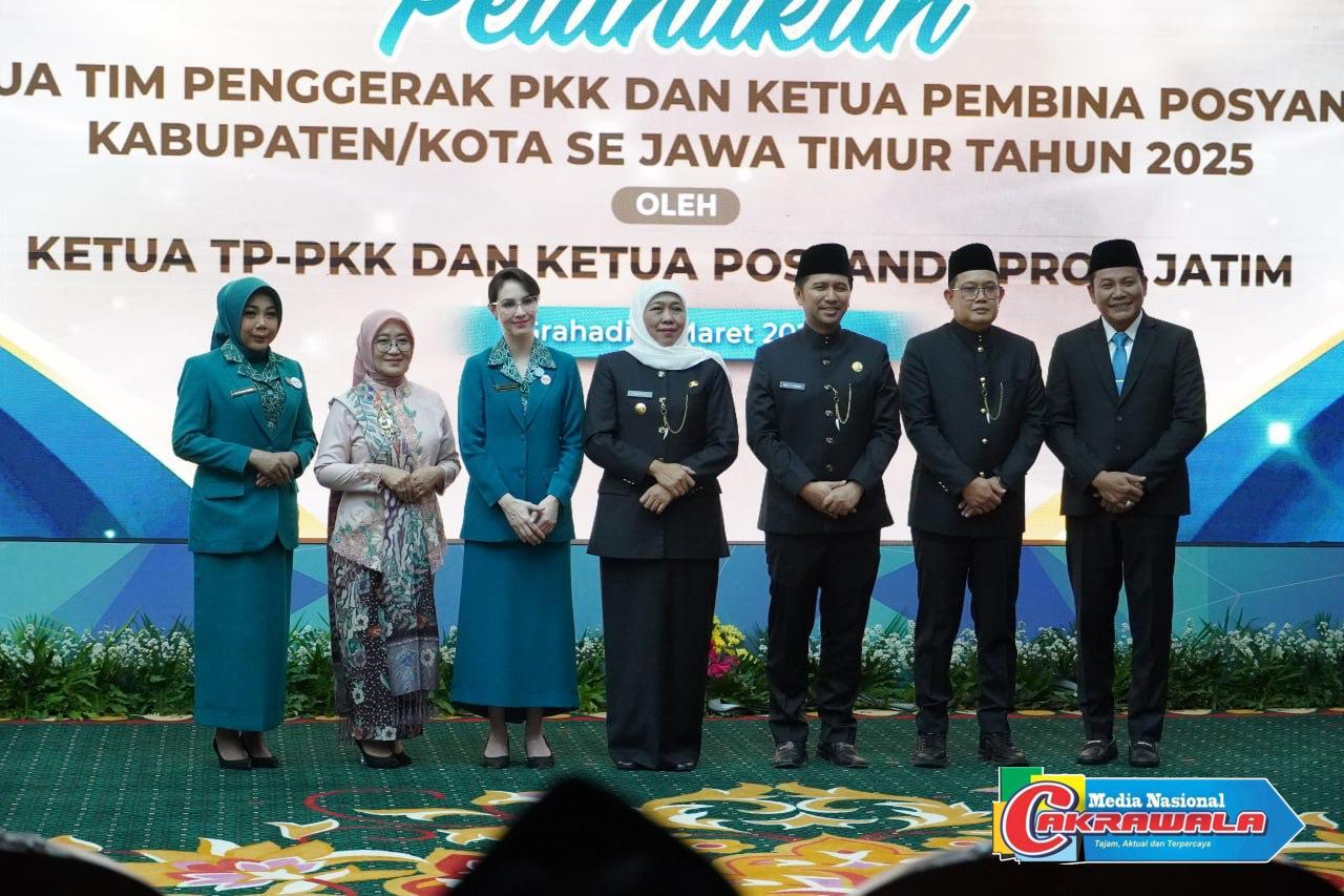 Sidoarjo, MN Cakrawala– 36 Ketua TP PKK kabupaten/kota di Jawa Timur dilantik Ketua TP PKK Provinsi Jawa Timur Arumi Bachsin Emil Dardak di Gedung Negara Grahadi Surabaya, Minggu, (2/3). Salah satunya istri Bupati Sidoarjo dr. Hj. Sriatun Subandi sebagai Ketua TP PKK Kabupaten Sidoarjo. Pelantikan Ketua TP PKK kabupaten/kota tersebut dibarengi dengan pelantikan Ketua Tim Pembina Posyandu kabupaten/kota se Jawa Timur.