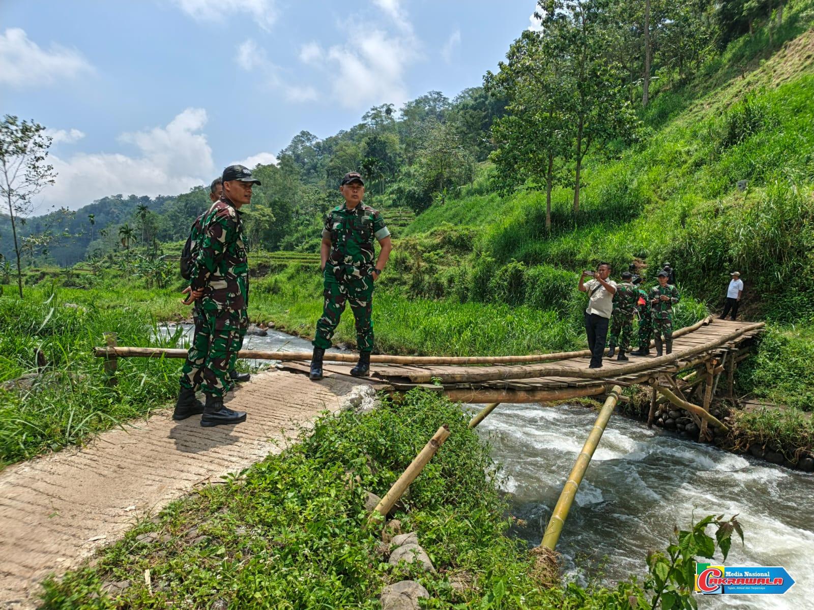 Setibanya di lokasi, Dandim bersama rombongan melaksanakan peninjauan langsung kondisi jembatan sementara serta aliran sungai yang menjadi akses penghubung masyarakat. Peninjauan ini dilakukan untuk melihat secara nyata kondisi lapangan yang nantinya akan menjadi pertimbangan dalam rencana pembangunan jembatan permanen.
