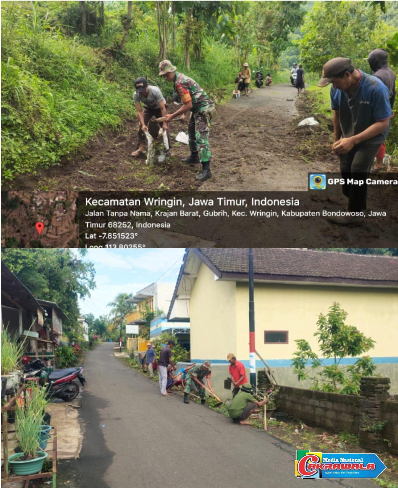 Bondowoso,Cakrawala-Dalam rangka menciptakan lingkungan yang bersih dan sehat, Babinsa Gubrih, Koramil 0822/05 Wringin Serma Madhasim, mengajak warga Desa Gubrih, Kecamatan Wringin, untuk berpartisipasi dalam kegiatan “Jumat Bersih” yang berlangsung pagi ini, Jumat (7/2). Kegiatan ini melibatkan Babinsa, Kepala Desa (Kades), perangkat desa, dan warga setempat untuk membersihkan jalan penghubung antar dusun.